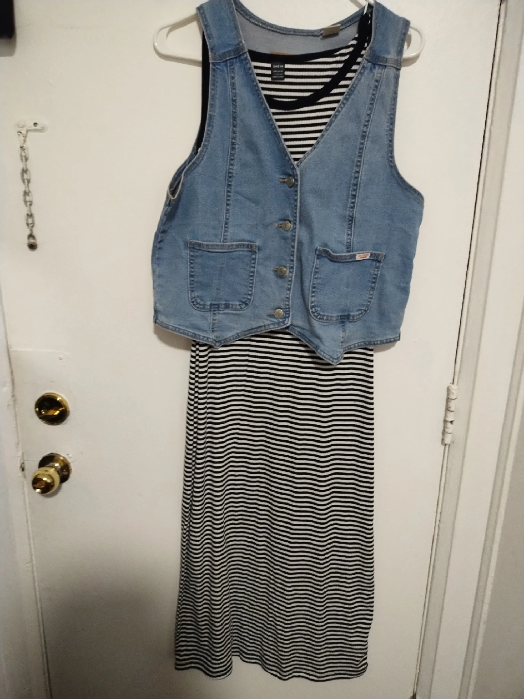 Levi Strauss & Co Signature denim vest in a size large! It's a light wash denim with a button-up front and two front pockets. Great for layering or wearing on its own!