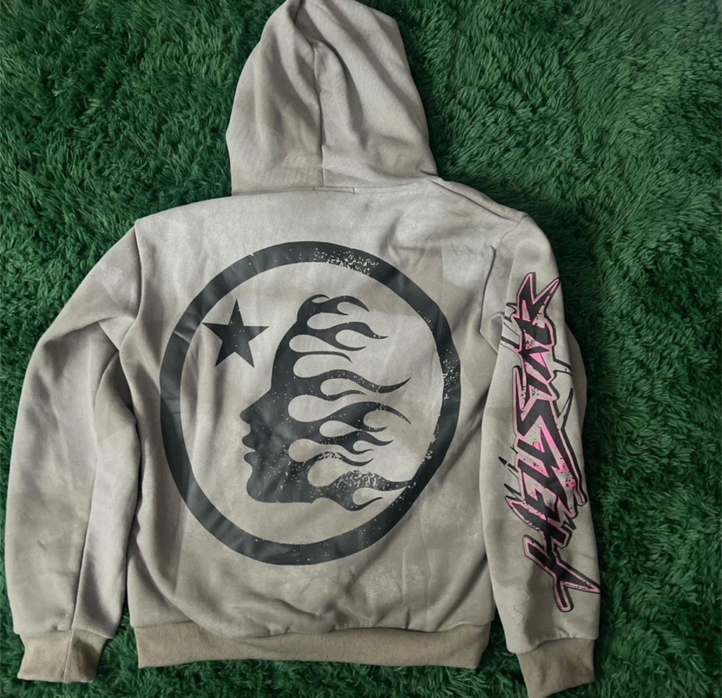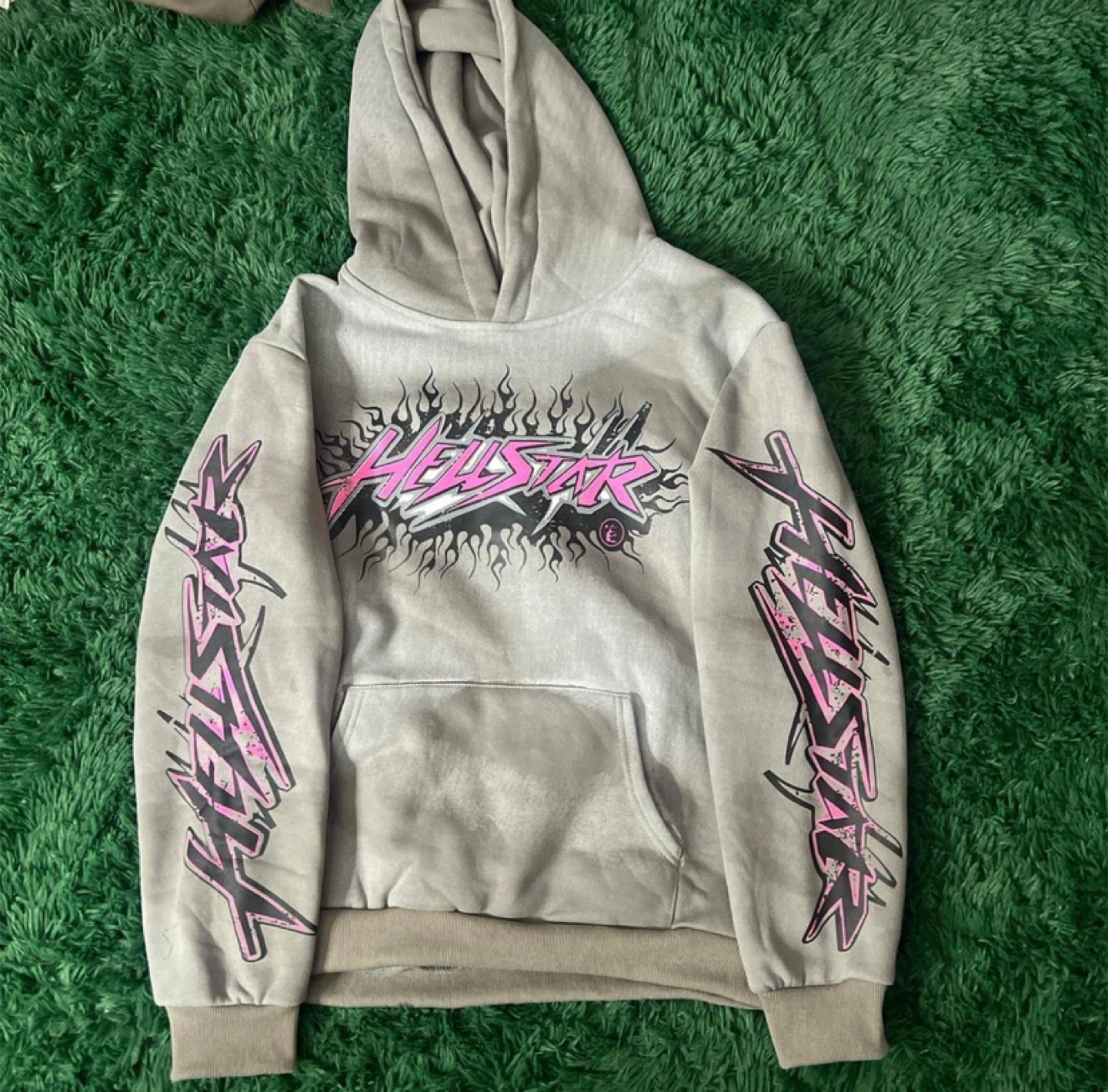 Hellstar Records Grey Hoodie Pink Flames Logo – All Sizes