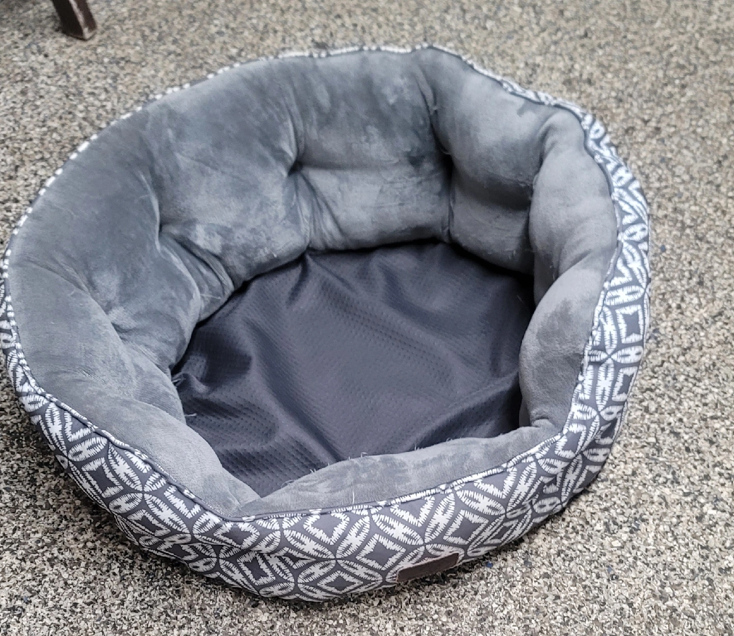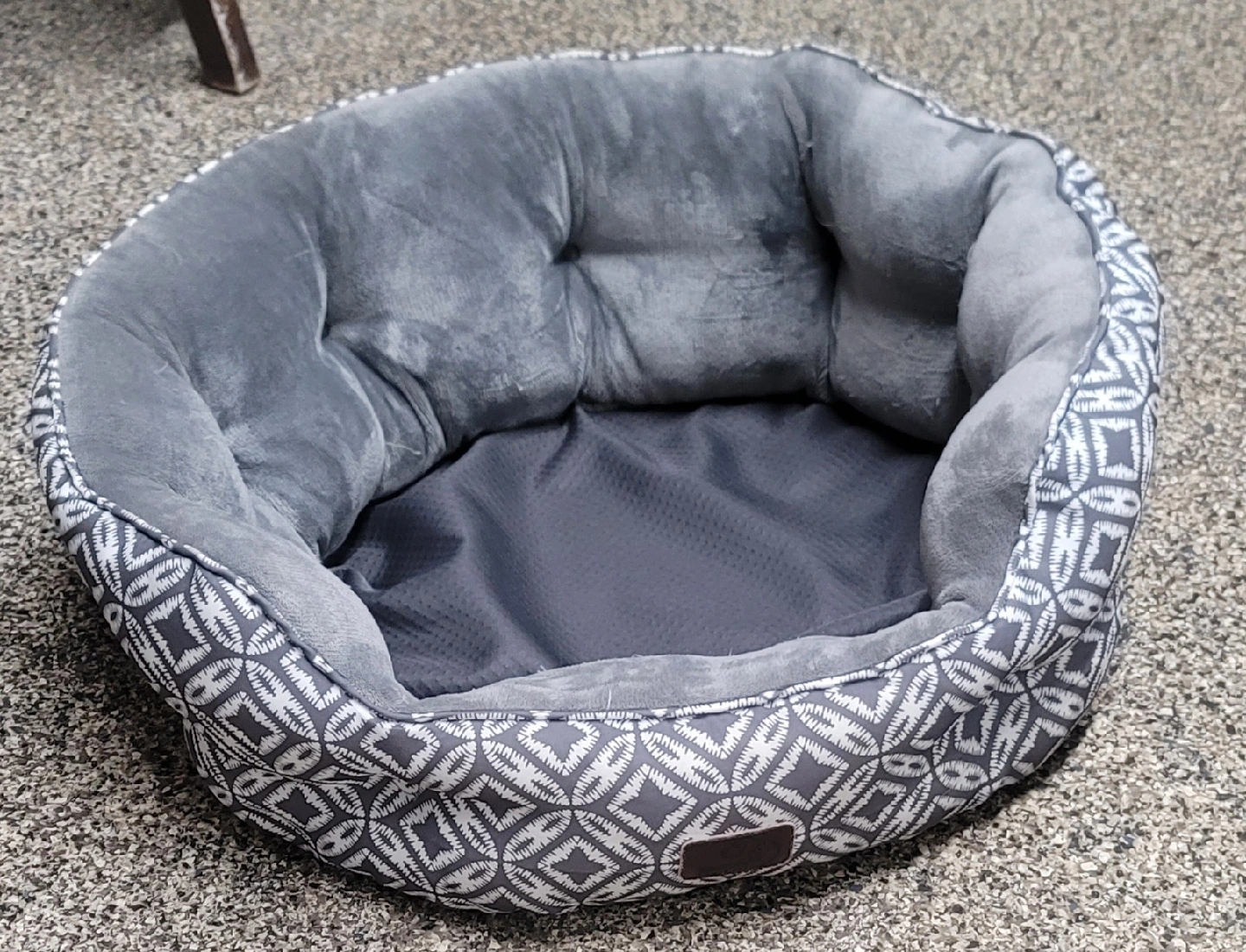 111Selling a BEDSURE comfy pet bed! It's in good condition and perfect for your furry friend to relax in. The bed is grey with a white pattern, and has a soft, plush interior for extra comfort