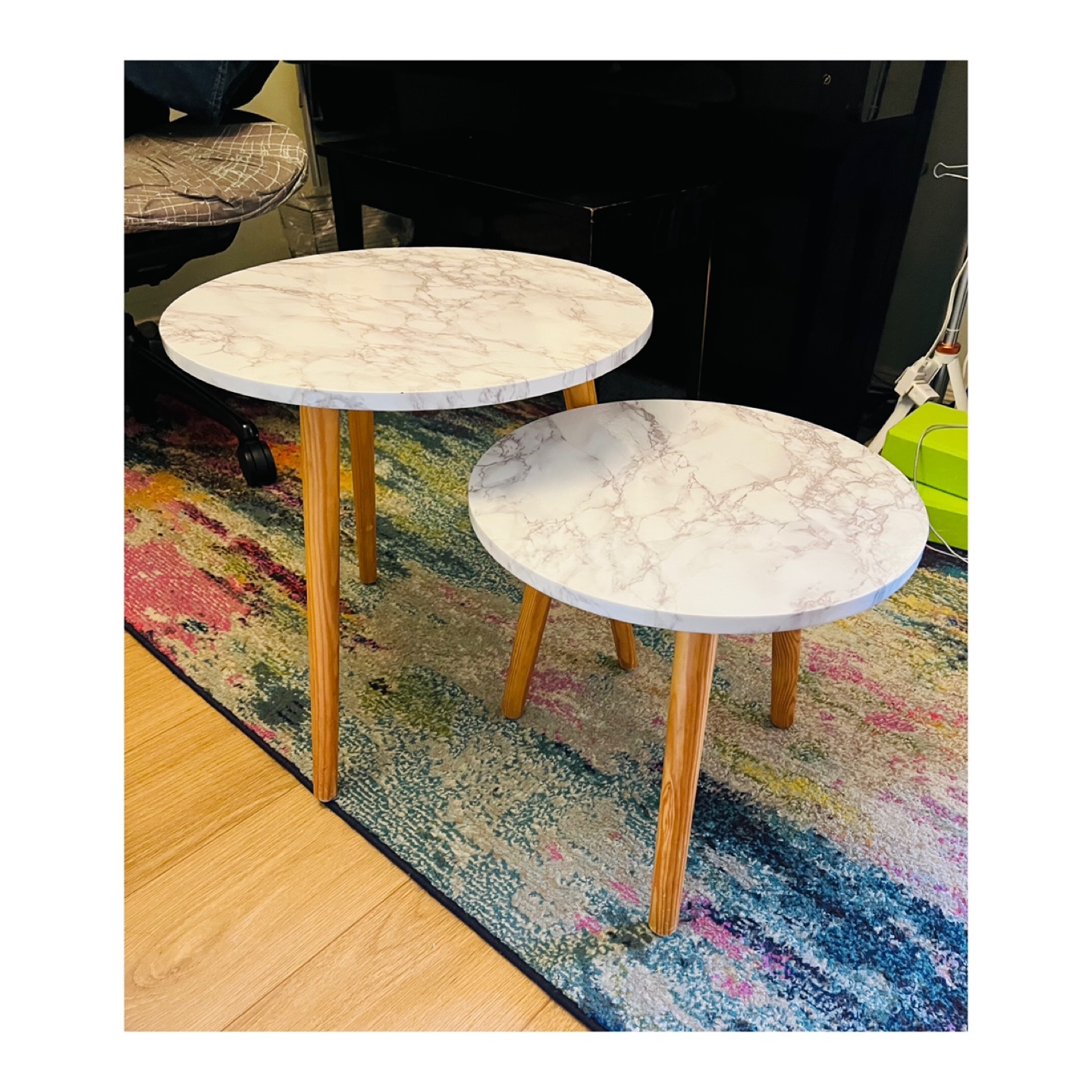Cute set of nesting side tables with a marble pattern top! They're in great shape and perfect for living room or bedroom.