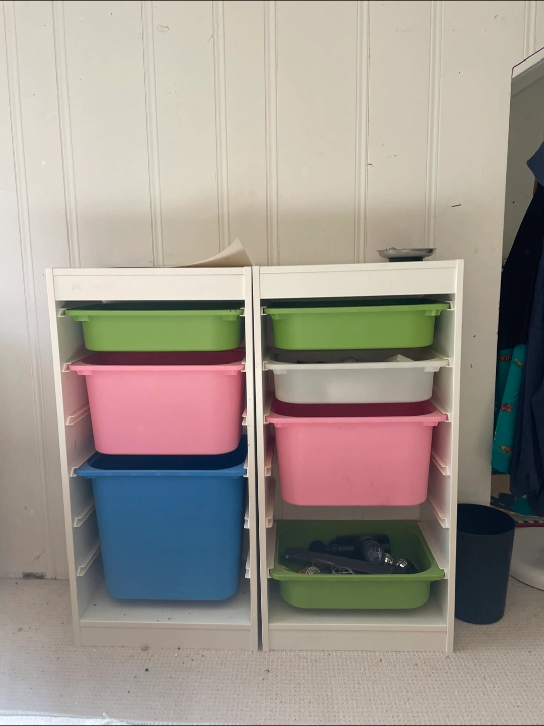 Selling an IKEA Trofast storage unit! It comes with a variety of colourful bins, perfect for organizing toys or other items. The unit is in good condition and ready for a new home