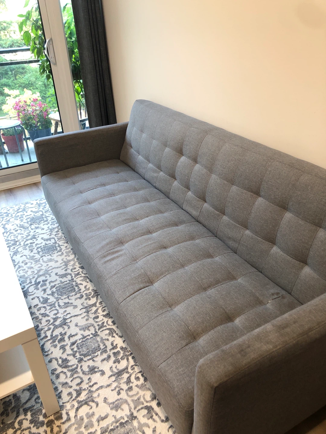 Selling a grey sofa bed in great condition. It's a comfortable couch and easily converts into a bed for guests. Perfect for small spaces!
