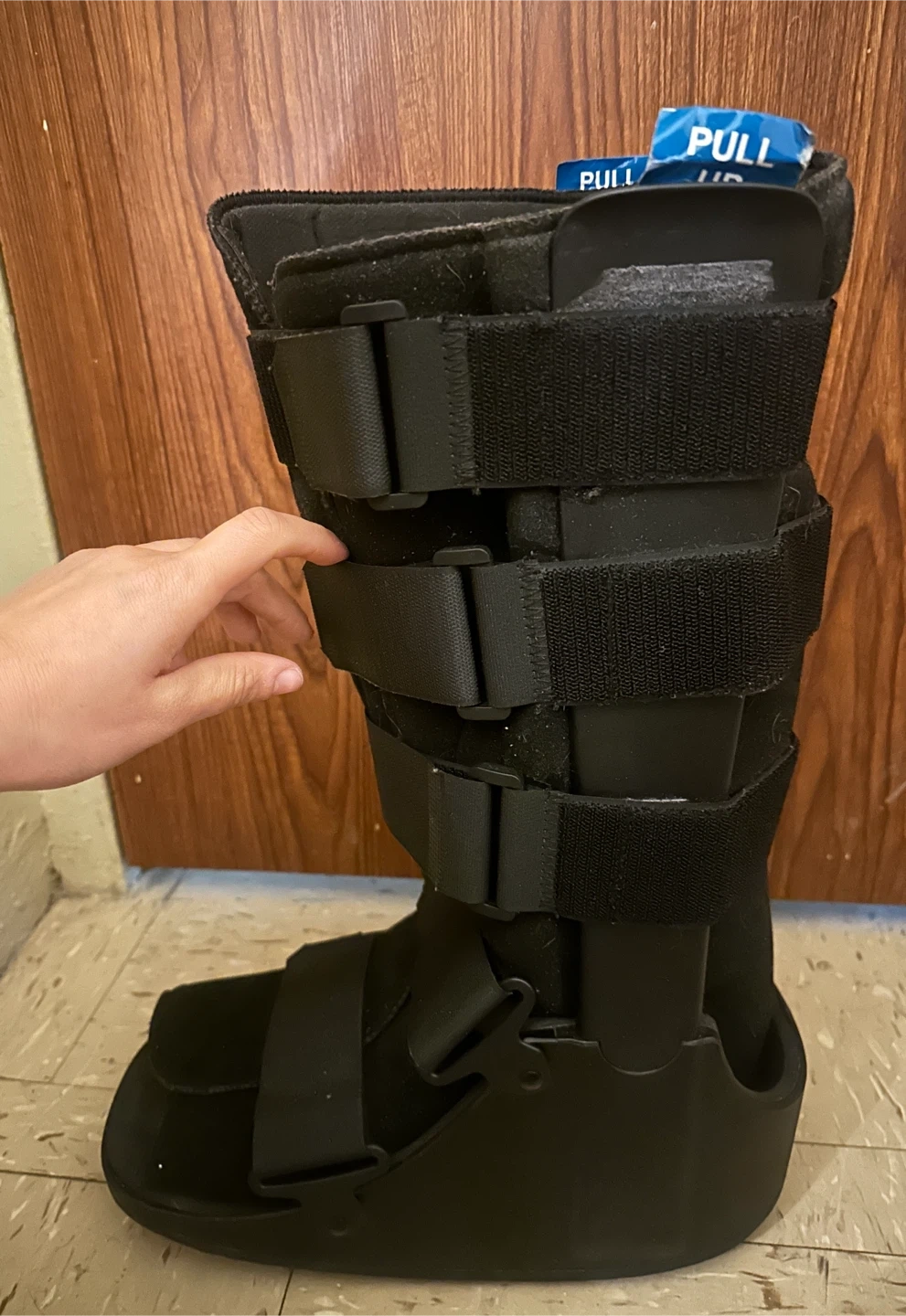 Selling a black medical walking boot. It has adjustable straps for a comfortable and secure fit. Great for recovery and support after accident or surgery. Used for a month. XL size. Got another boot size L.