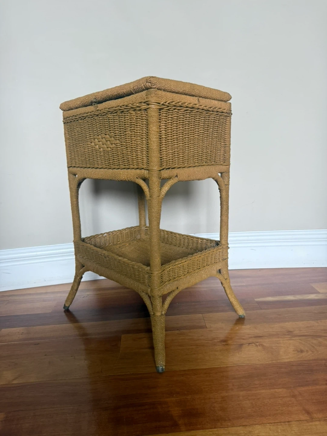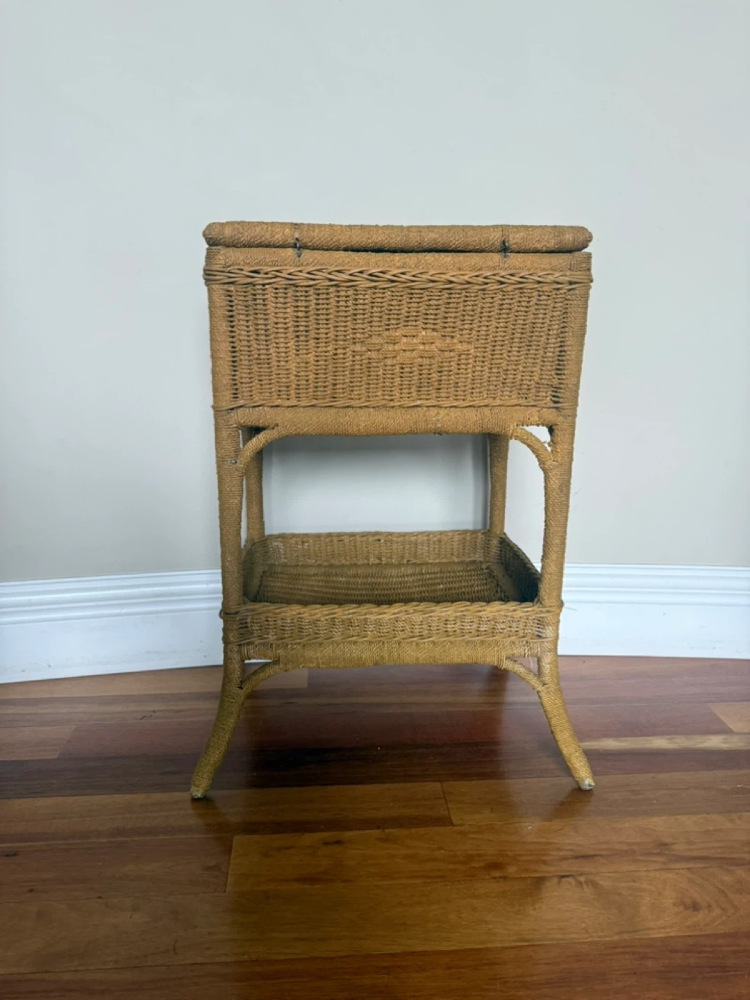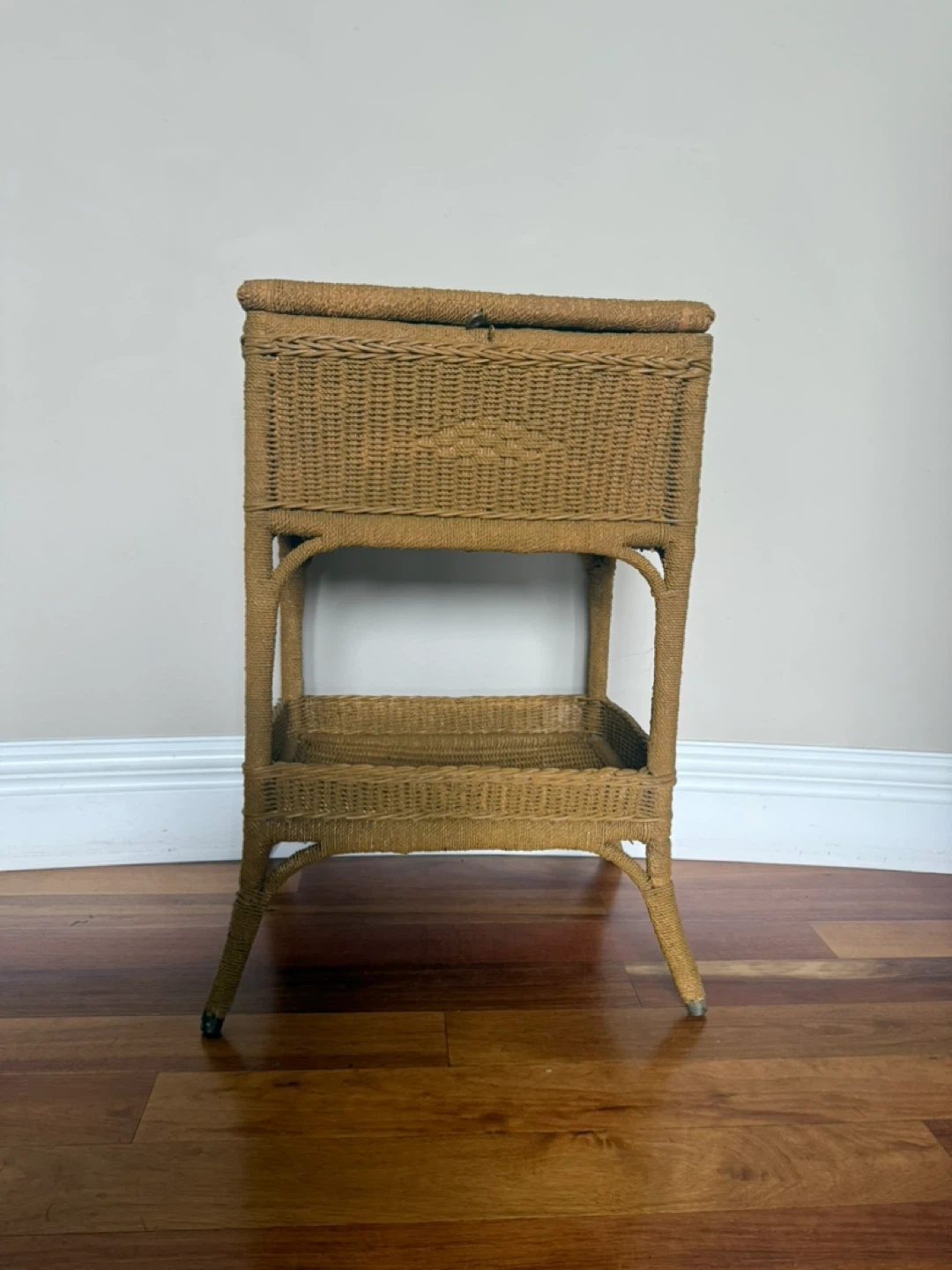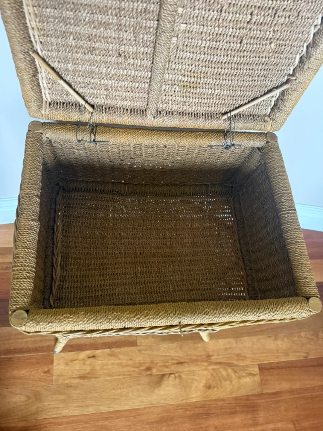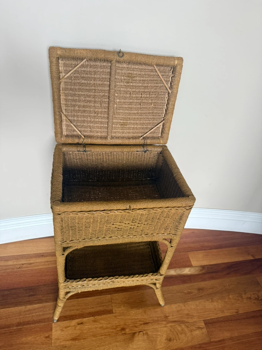 75Looking to add a touch of rustic charm to your space? I'm selling this lovely stained wicker storage side table. It features a lift-up lid for convenient storage and a lower shelf for displaying your favourite items. Stable, sturdy and ready to find a new home! Please see photos for size & condition. Cash and pick up only in W. Hillhurst NW. Thanks for looking!