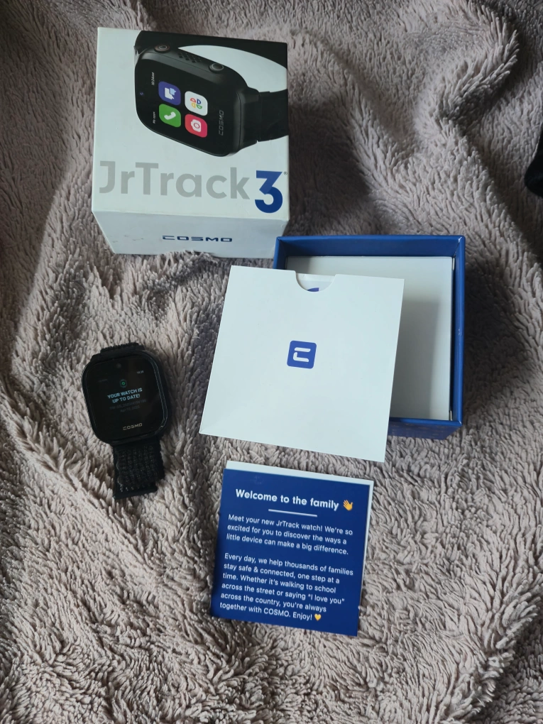 Selling a COSMO JrTrack 3 smartwatch! It comes with the box and welcome booklet. It's a great way to keep kids safe and connected. Meet your new JrTrack watch! We're so excited for you to discover the ways a little device can make a big difference. Every day, we help thousands of families stay safe & connected, one step at a time. Whether it's walking to school across the street or saying "I love you" across the country, you're always together with COSMO. Enjoy!