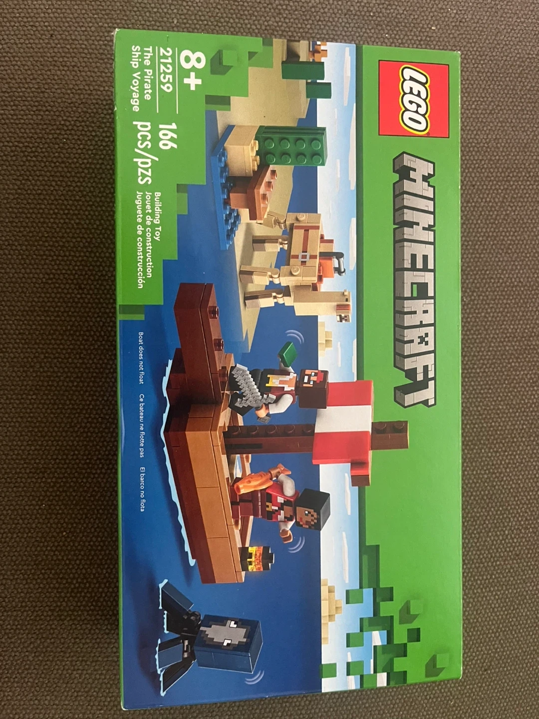 This set features a fun pirate ship build and includes 166 pieces. Perfect for Minecraft and LEGO fans aged 8+