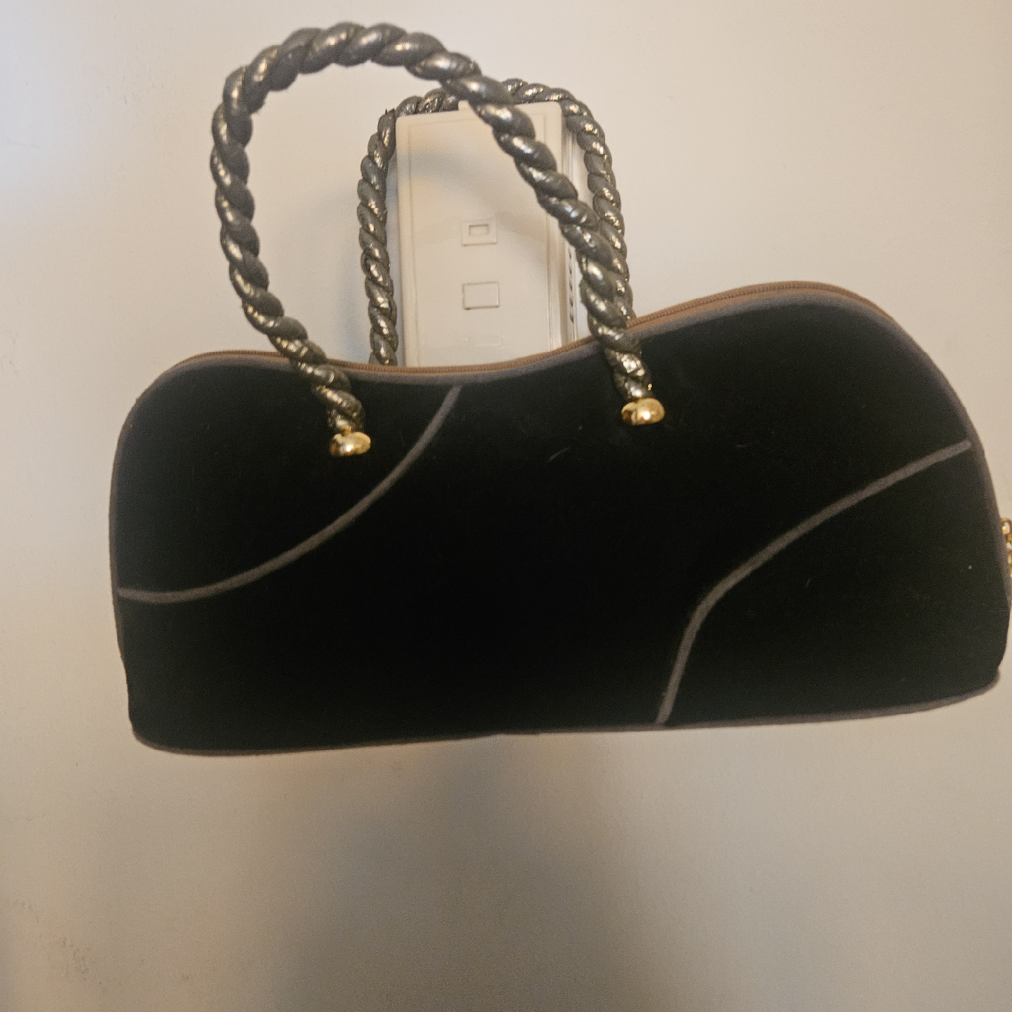 VTG,embroidered, Flowers velvet silver twisted bag handle,hand made,70s,good condition, inside Arounde the zipper AS I S,two side zipper.