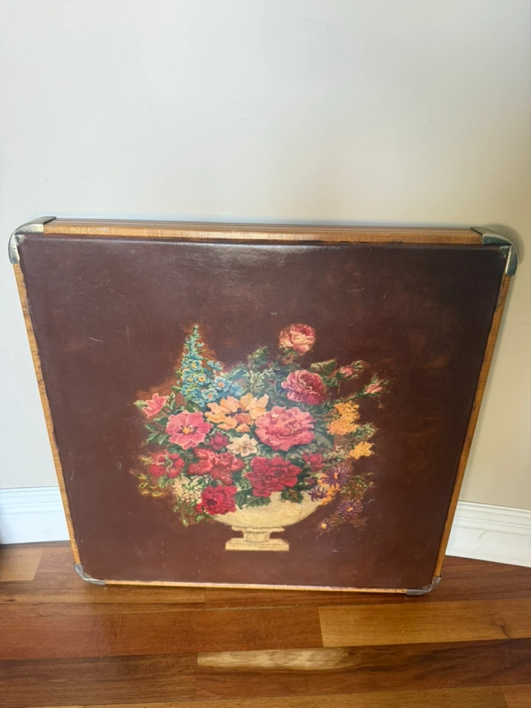 75Selling a vintage square folding card table. It features a lovely floral design on a dark brown top and has a wooden frame. The table is sturdy and in good salvaged condition. Perfect for games, puzzles, crafts or extra surface space! Please see photos for size & condition. Cash and pick up only in W. Hillhurst NW. Thanks for looking!