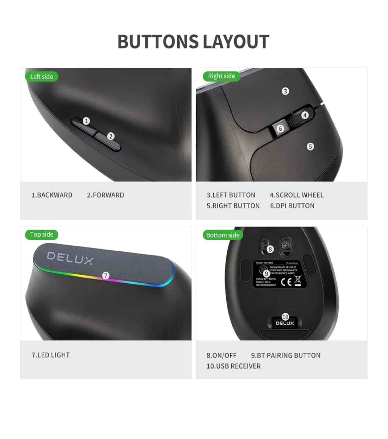 DELUX Vertical Ergonomic Mouse