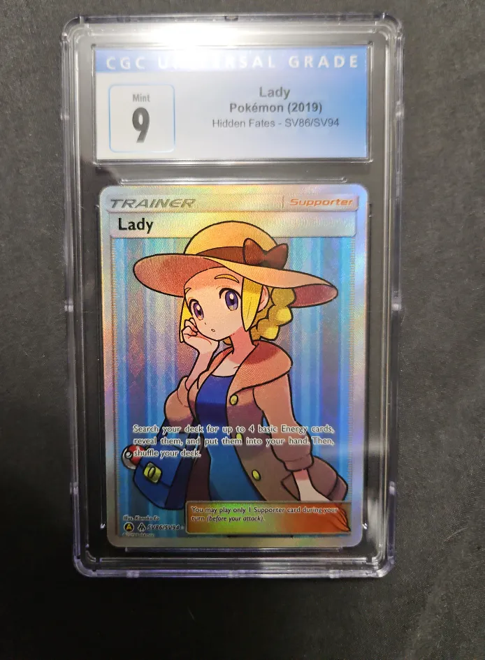 Selling a CGC graded Lady Pokemon card. It's in mint condition, graded at 9! This is from the Hidden Fates series, SV86/SV94. A great addition to any collection!