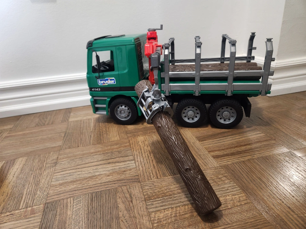 Selling a Bruder Mercedes-Benz Actros Timber Truck! It's in great shape and ready for a new home. This toy truck is perfect for kids who love construction and vehicles. It features realistic details and durable construction, making it great for both indoor and outdoor play. comes with 3 logs