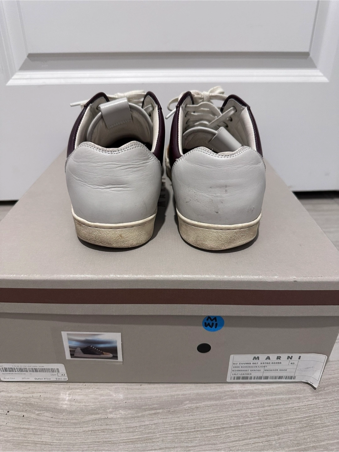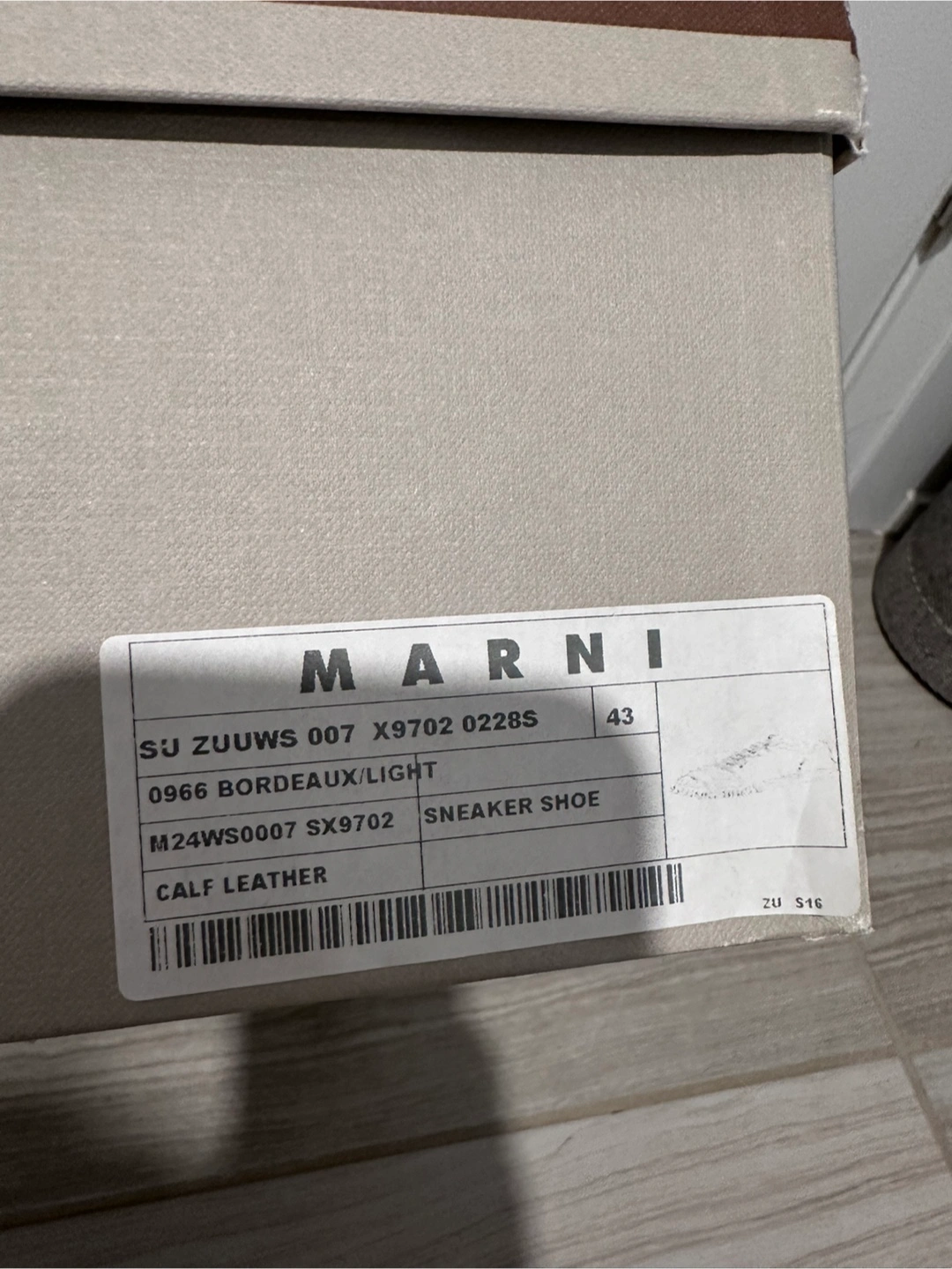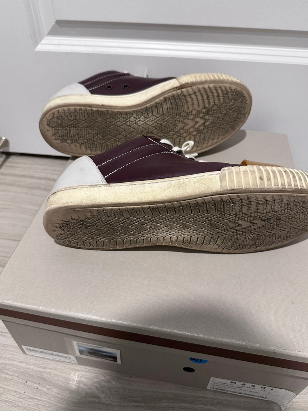Selling a pair of Marni sneakers in burgundy and tan. They are a men’s size 43 (equivalent to US 10-10.5) and come with the original box. Please see photos for condition.