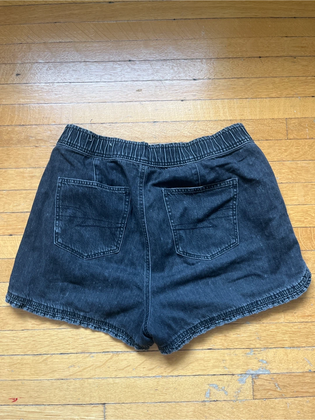 Selling a pair of black denim shorts in size 8. Perfect for casual wear, these shorts are comfortable and stylish. These shorts feature a comfortable elastic waistband.