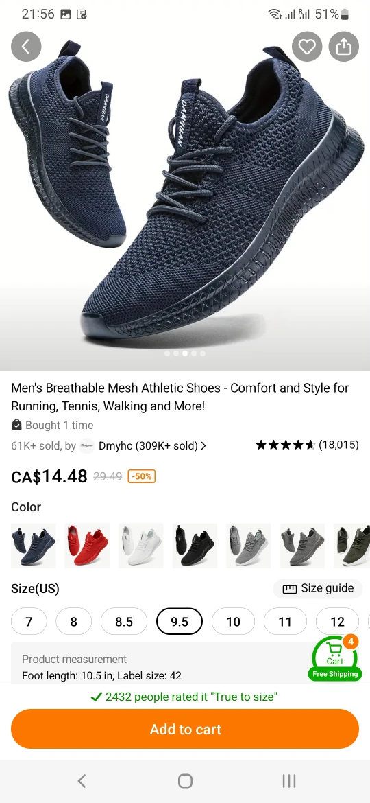 1 / 31 / 3Buy & SellNew Mens Breathable Mesh Athletic ShoeNew Mens Breathable Mesh Athletic Shoe$5Selling it because it's small size for me. Shoe size is US 9.5.ConditionNewSize9.5 USWHERE TO MEETFood BasicsView MapSELLERSrinivas VedulaN St. James Town12510 reviews1 chats·1 favorites·50 viewsSEND CHAT TO SELLERHi Srinivas Vedula! I’m interested in your listing.Hi Srinivas Vedula! I’m interested in your listing.Get the Karrot app to chatSign In to chat
