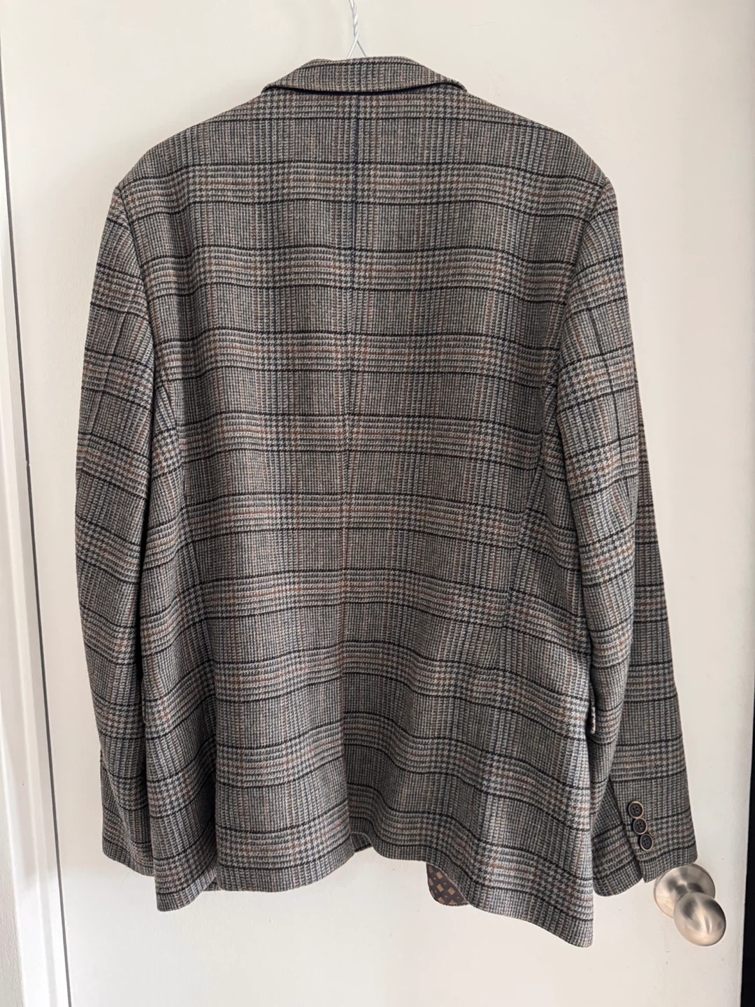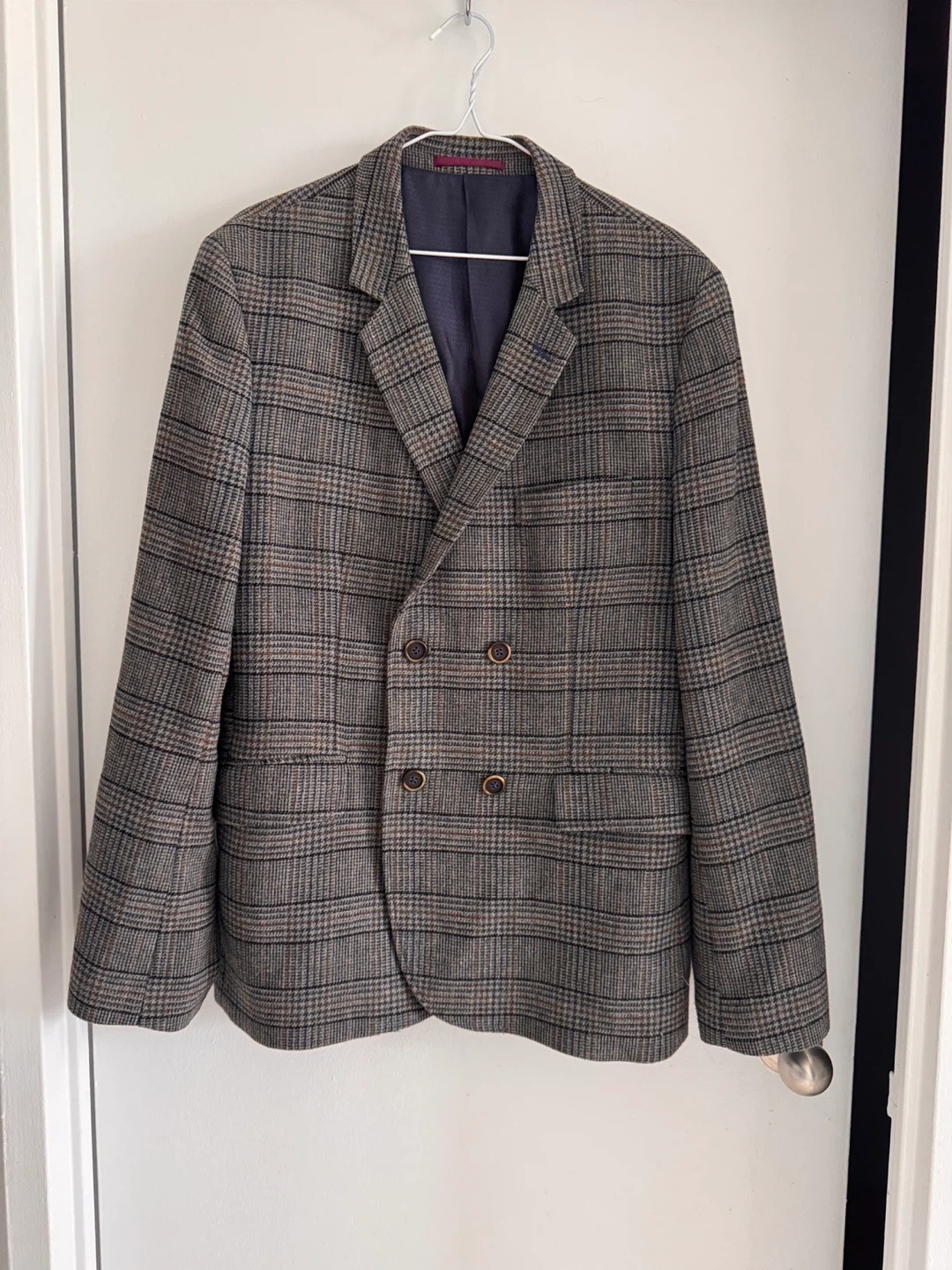 Selling a stylish RW&CO. blazer in a classic plaid pattern! It's a size 44 and in great condition. Perfect for adding a touch of sophistication to your wardrobe. The material feels nice and durable, ready for any occasion