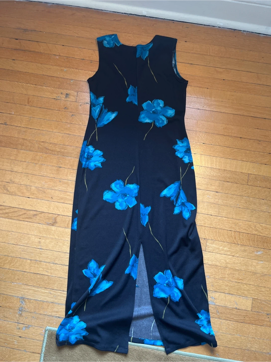 Beautiful sleeveless maxi dress with a floral pattern! The dress features a slit at the back.