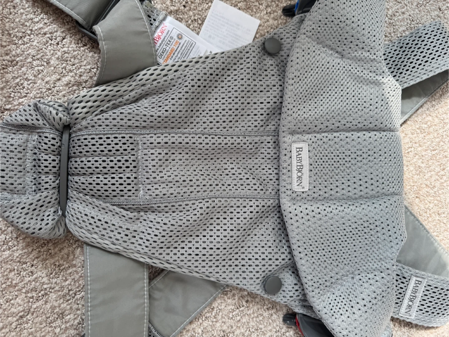 158Selling a BabyBjorn mesh baby carrier in grey. Like new condition, only used 2-3 times as this was our second carrier at grandparents house. Originally paid $179+tax Carrying facing in from newborn to 12 months and facing out 5-12 months 3D mesh is made of 100% polyester, a super-soft, flexible fabric that dries quickly after washing. This is a high-tech, breathable fabric, so it stays pleasantly cool when you’re babywearing. You can easily unfasten the entire front section of the carrier to lift out your sleeping baby. Once your baby has grown a little, you can choose whether to use the facing-in or facing-out position.