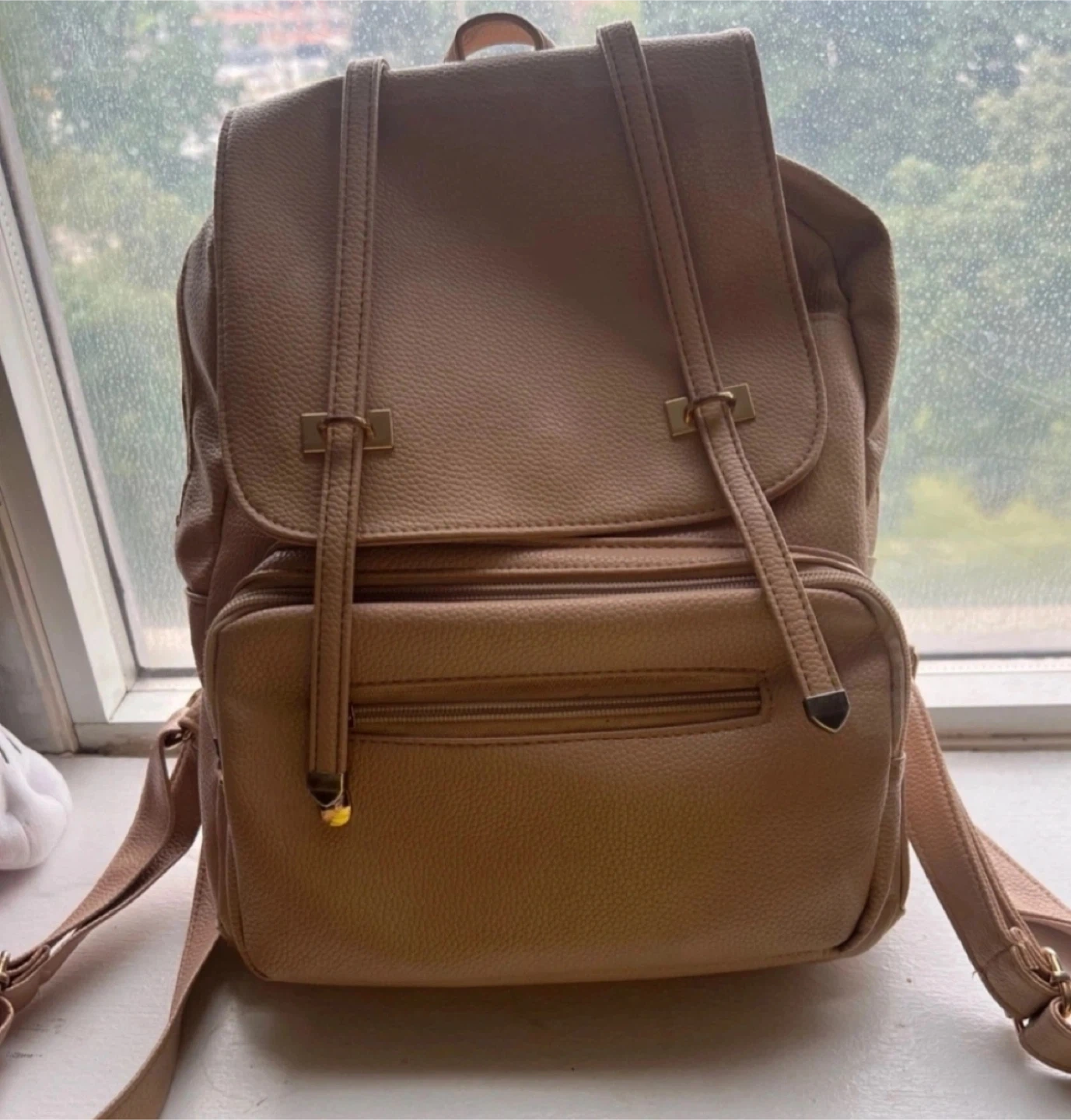 Selling a cute beige backpack! It's in great condition and perfect for everyday use. Has a few pockets for storage