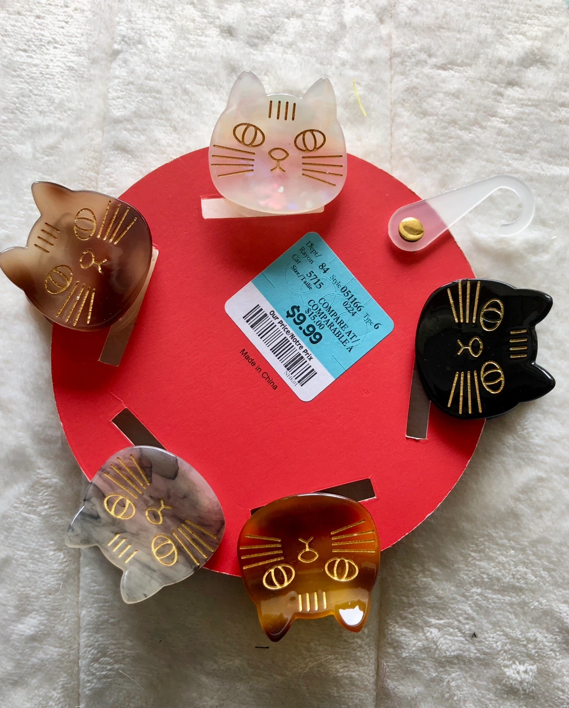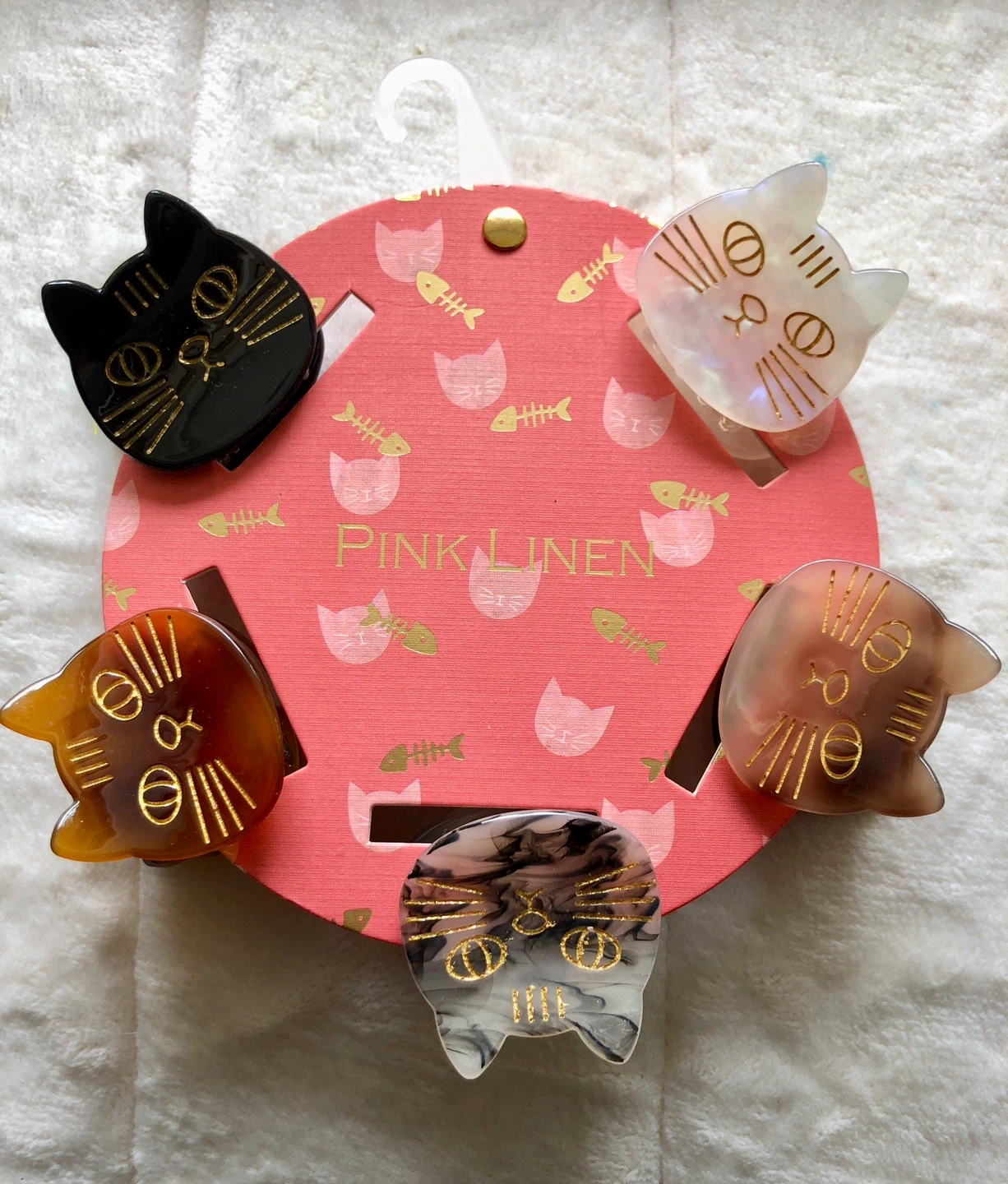 Pink Linen Cat Hair Clips - Set of 5
