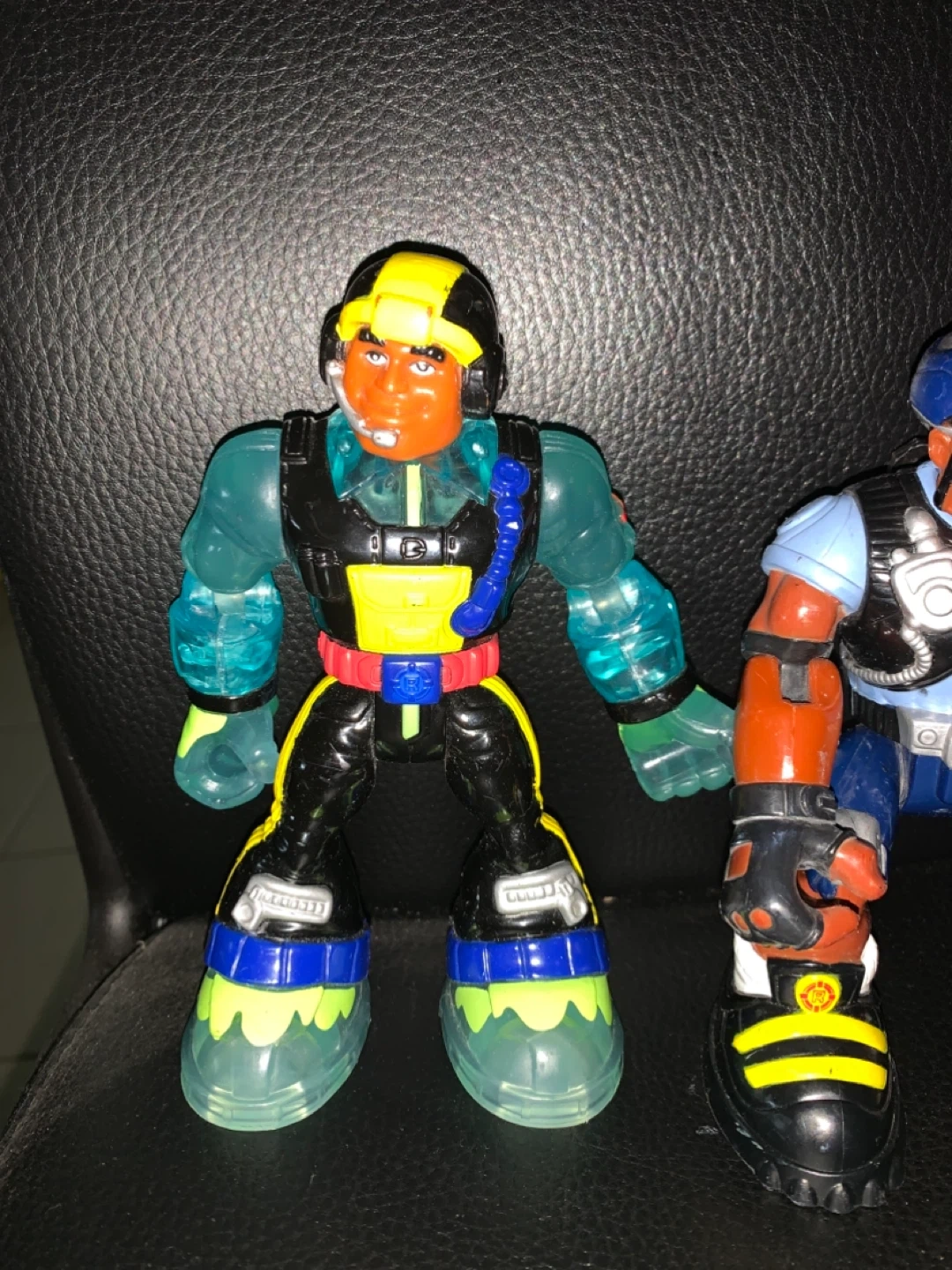 Selling a set of 4 vintage Fisher-Price Rescue Heroes action figures. These chunky, durable figures were popular in the late 1990s/early 2000s and are great for collectors or kids who enjoy classic rescue/adventure toys. Includes: • 1x Scuba diver with yellow/black suit and flippers • 1x Police officer in blue uniform • 1x Officer in full tactical blue suit with gear • 1x Rescue specialist with red cap, sunglasses, and backpack unit Condition: Pre-owned, played with but in good overall shape. Some light wear consistent with age (see photos).