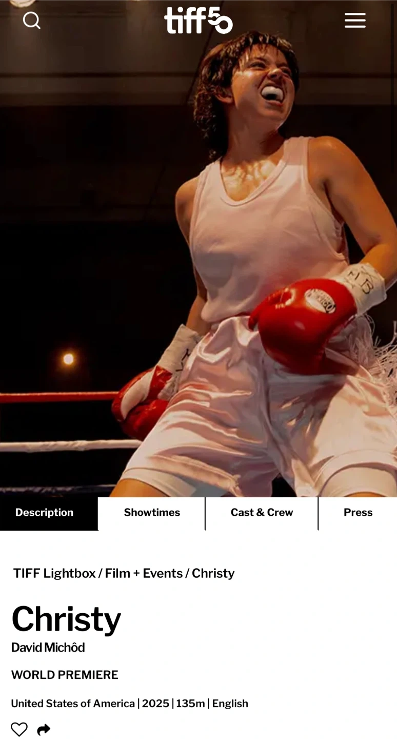 Selling 2 ticket for the TIFF Lightbox film event, Christy. This is a world premiere event in the United States of America in 2025. Don't miss out! I can’t make it anymore, I would transfer to your ticketmaster account once payment is received.