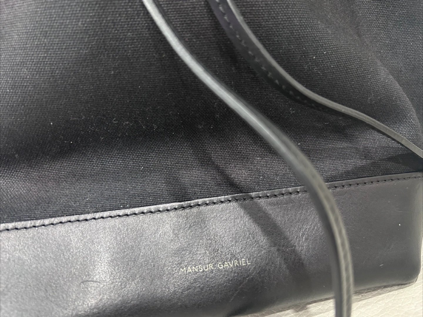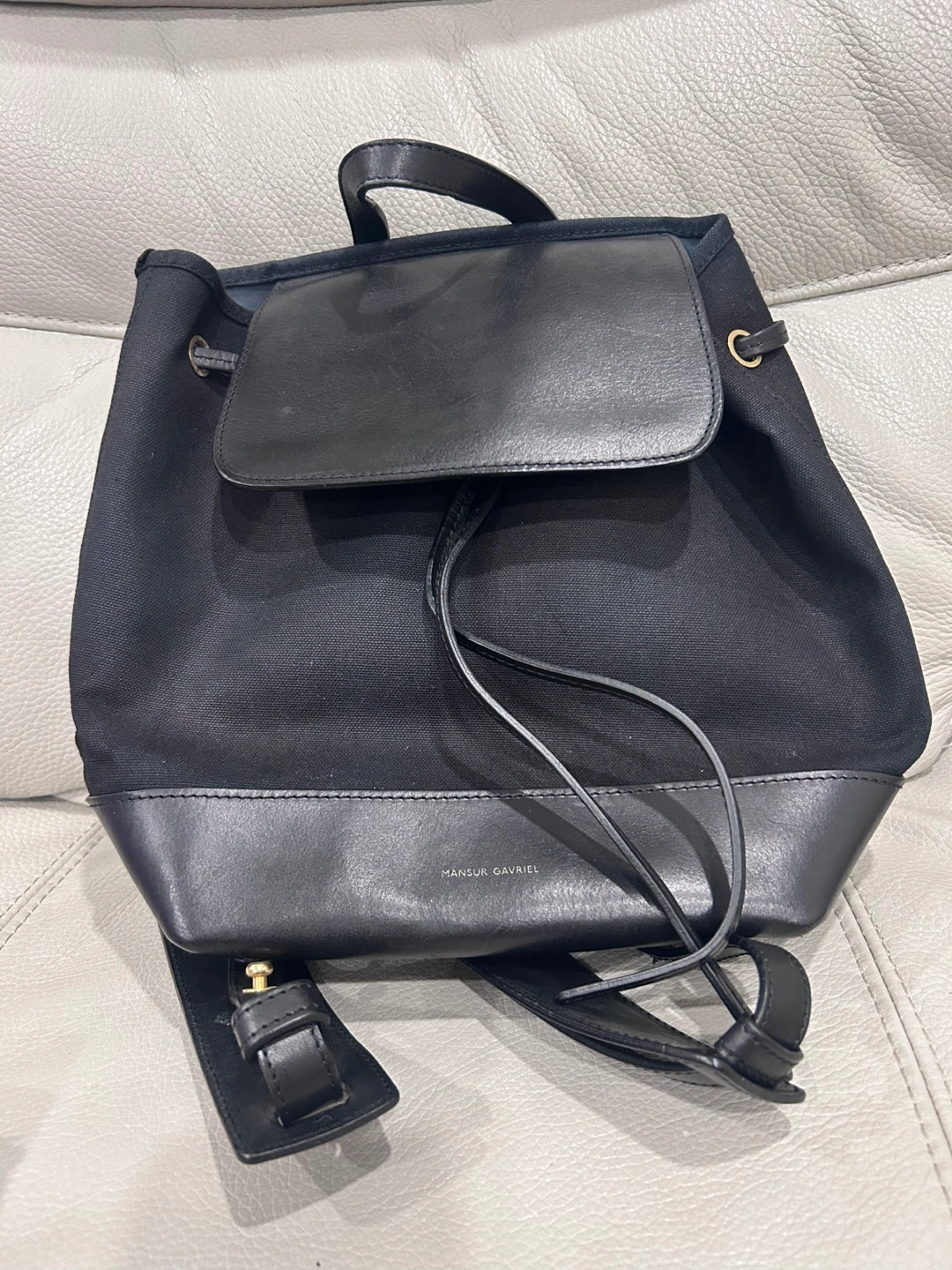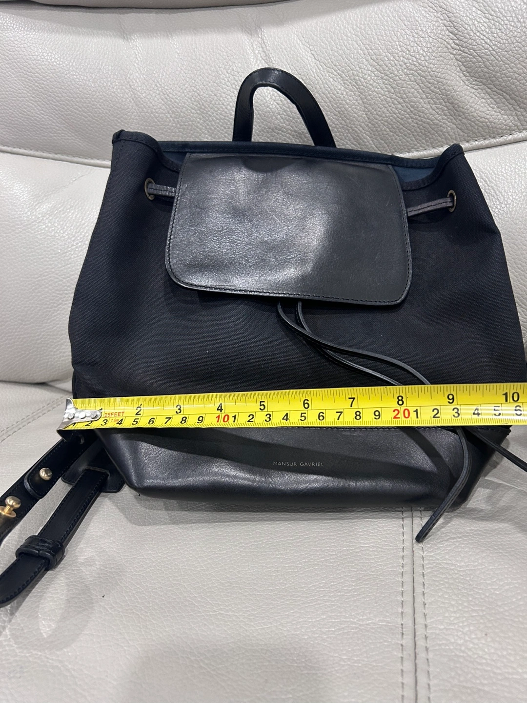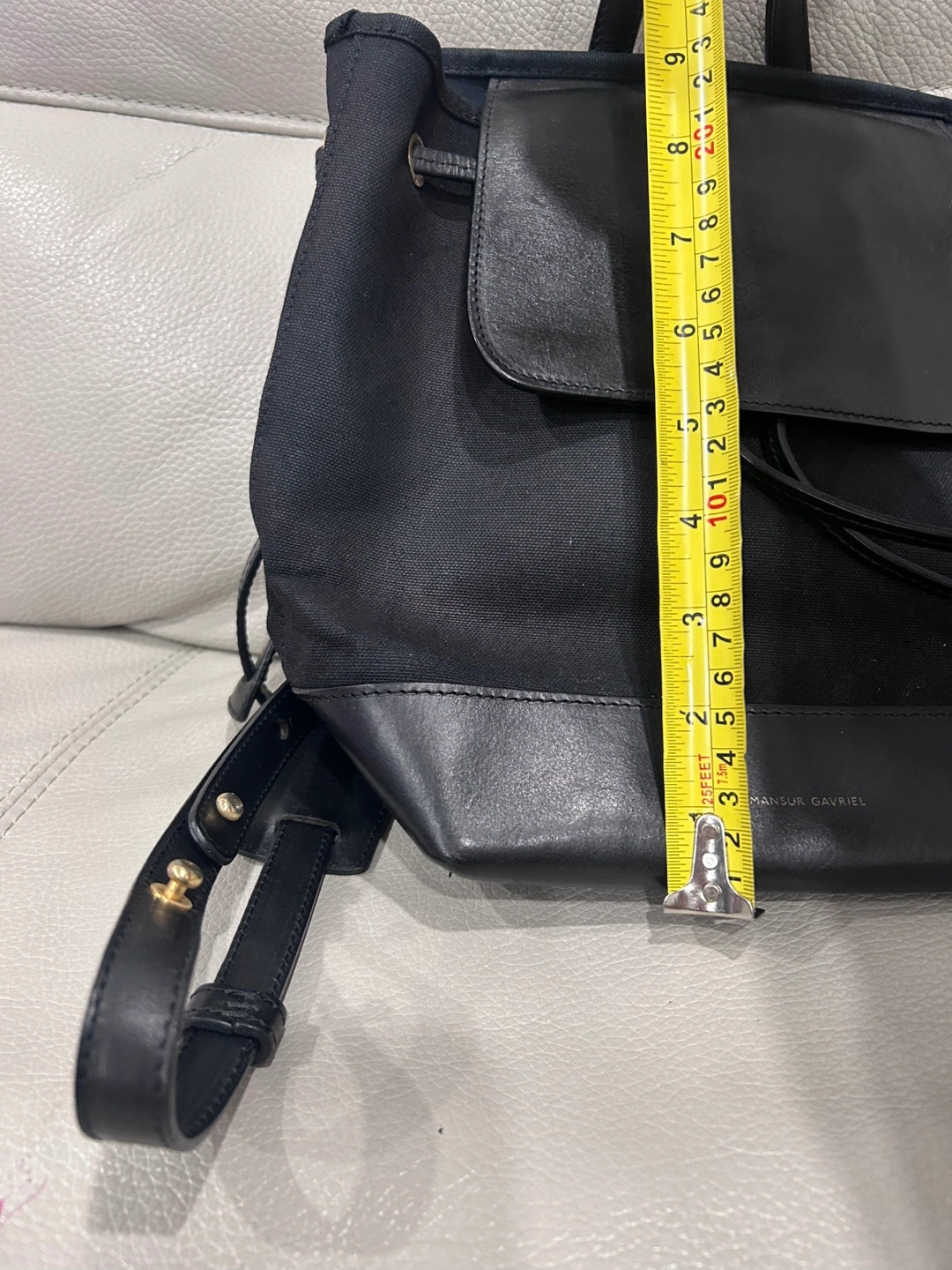 I'm selling a Mansur Gavriel black backpack. It's in great condition and perfect for everyday use. The approximate dimensions are: - Width: 9 inches - Height: 10 inches