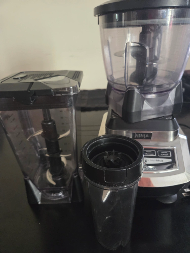 Selling a Ninja Professional Blender! It comes with the Nutri Ninja cups, so you can make single-serve smoothies with ease. It's in great condition and ready for a new home. Perfect for all your blending needs! Boxed and ready for pick up in Oakwood village.