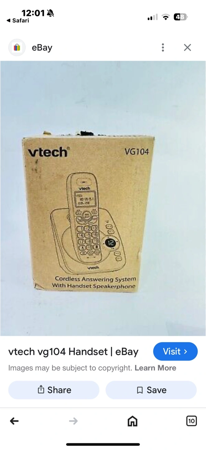 Selling a VTech VG104 Cordless Answering System with Handset Speakerphone. It comes with the box