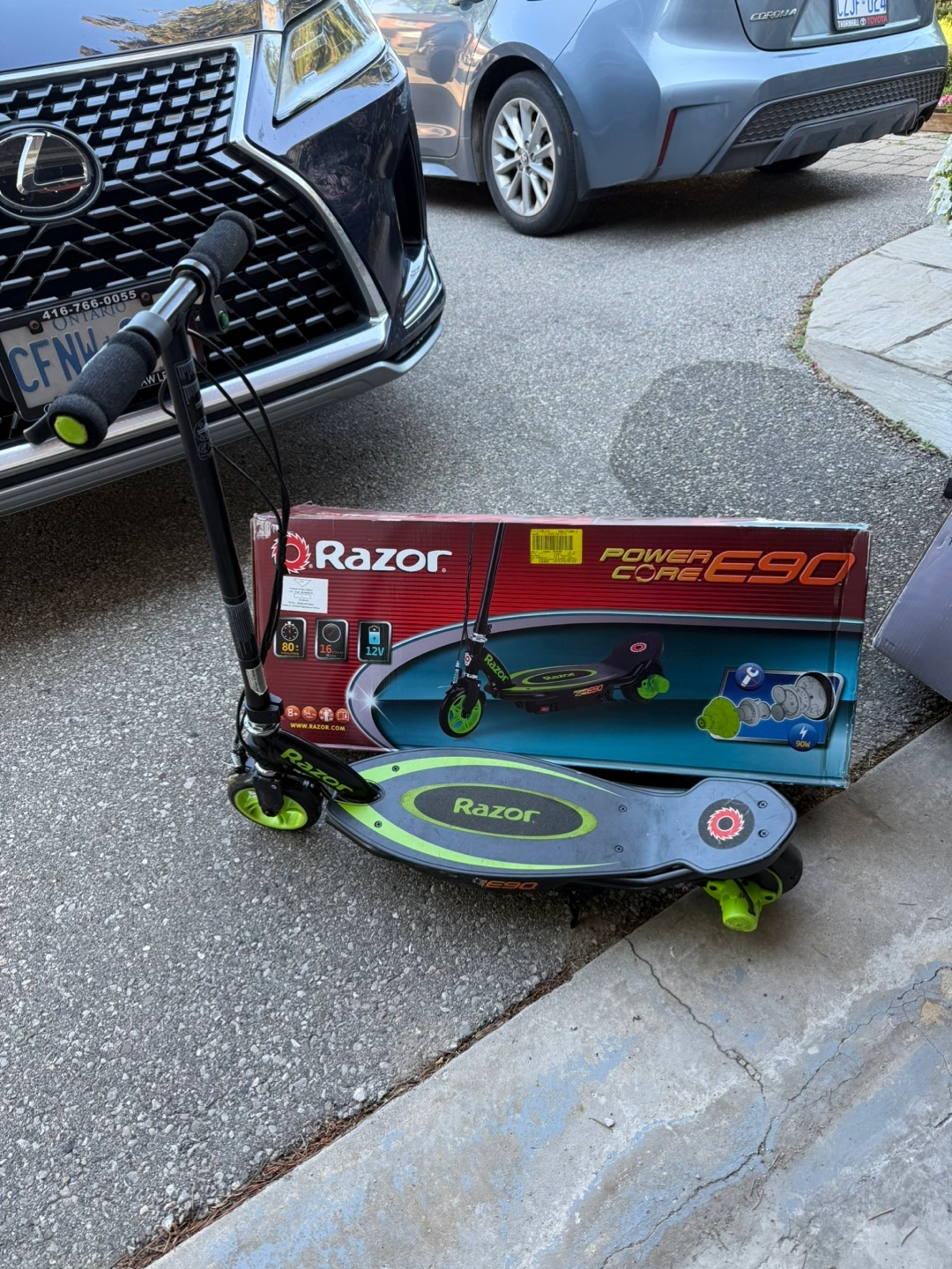 Looking to sell a Razor Power Core E90 electric scooter! It's in great shape and ready for some fun rides. Comes with the original box. Perfect for kids looking for a bit of electric scooting action!
