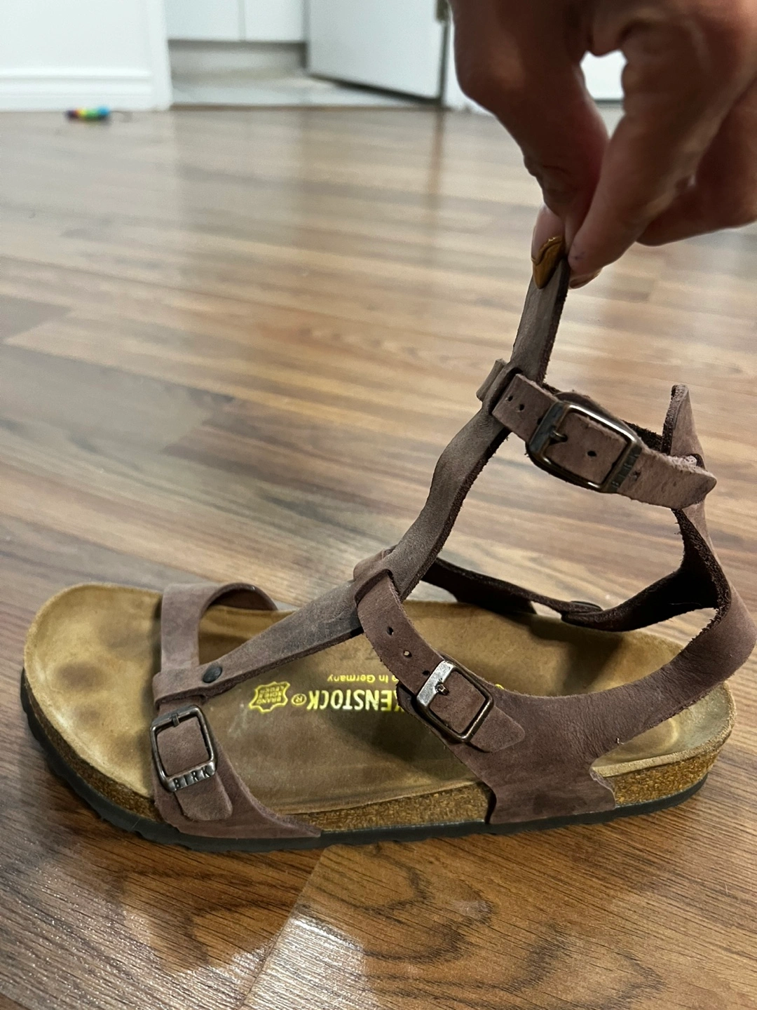 These are a pair of rare Birkenstock gladiator sandals in size 40. They're in very good condition, purchased last year and worn very minimally.