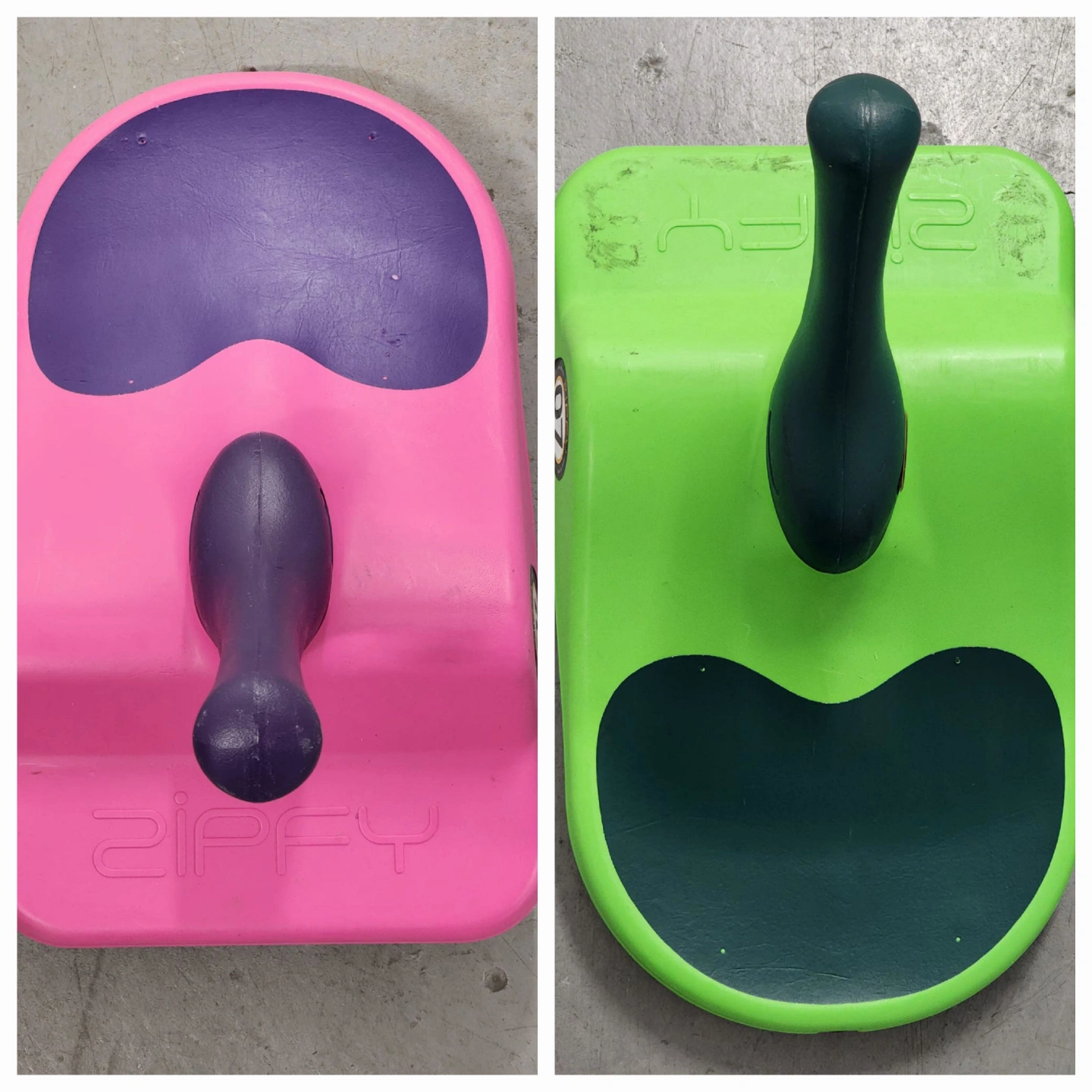 Get ready for some winter fun with this Zipfy Racer sled! It's perfect for kids and adults who love to hit the slopes. This sled is lightweight and easy to carry, making it great for a day of sledding with the family. Available in green and pink.