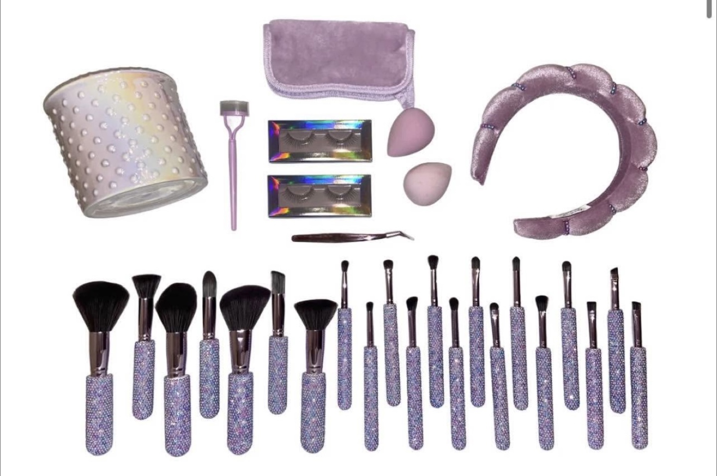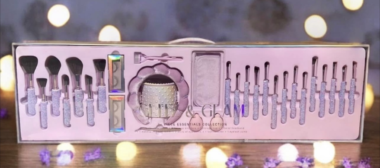 Selling a brand new Glitz & Glam 32-piece makeup brush set! It comes with a variety of brushes, makeup blenders, and a three-compartment storage cup. Perfect for anyone looking to upgrade their makeup kit!