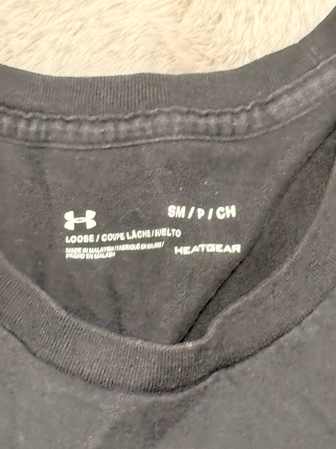 Selling a black Under Armour HeatGear t-shirt in size small. It's in great condition and perfect for workouts or everyday wear! The material is lightweight and breathable, making it super comfy. It's a loose fit.