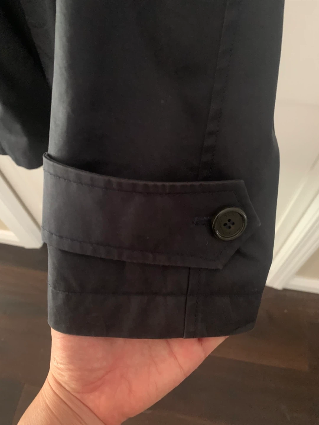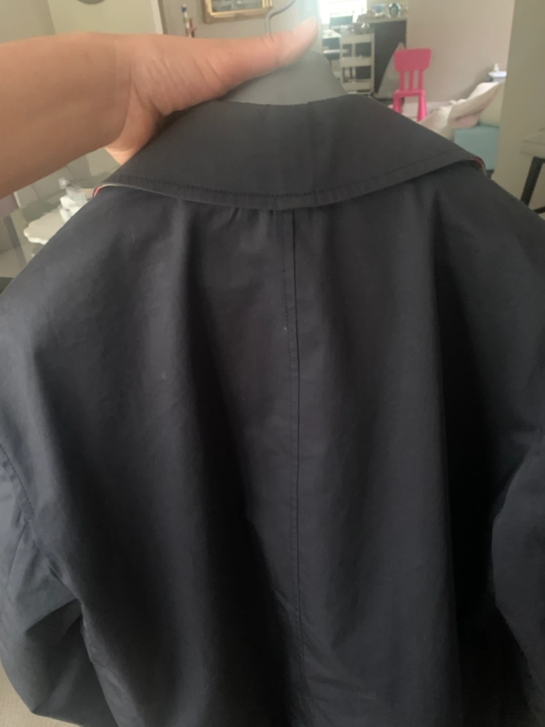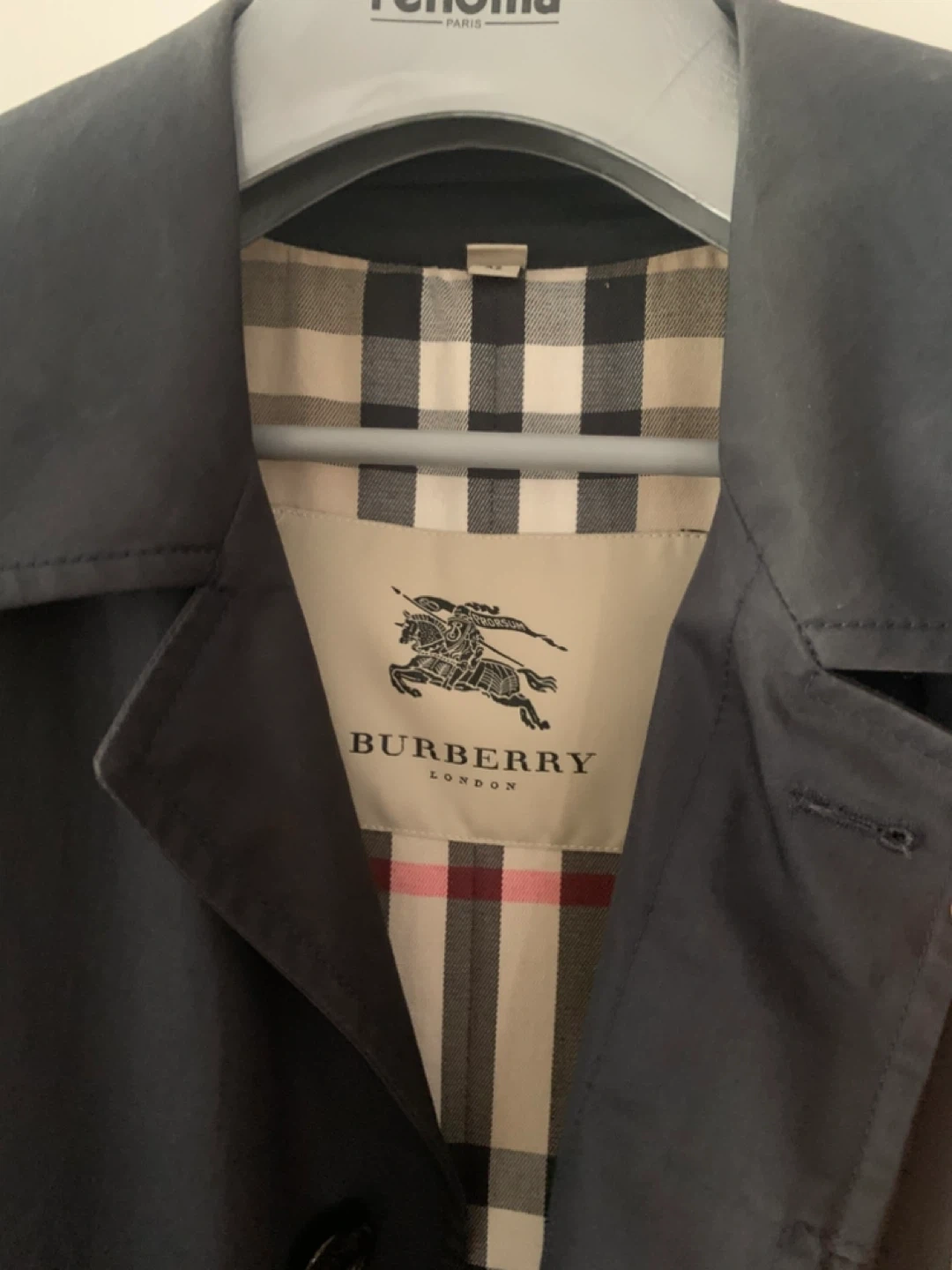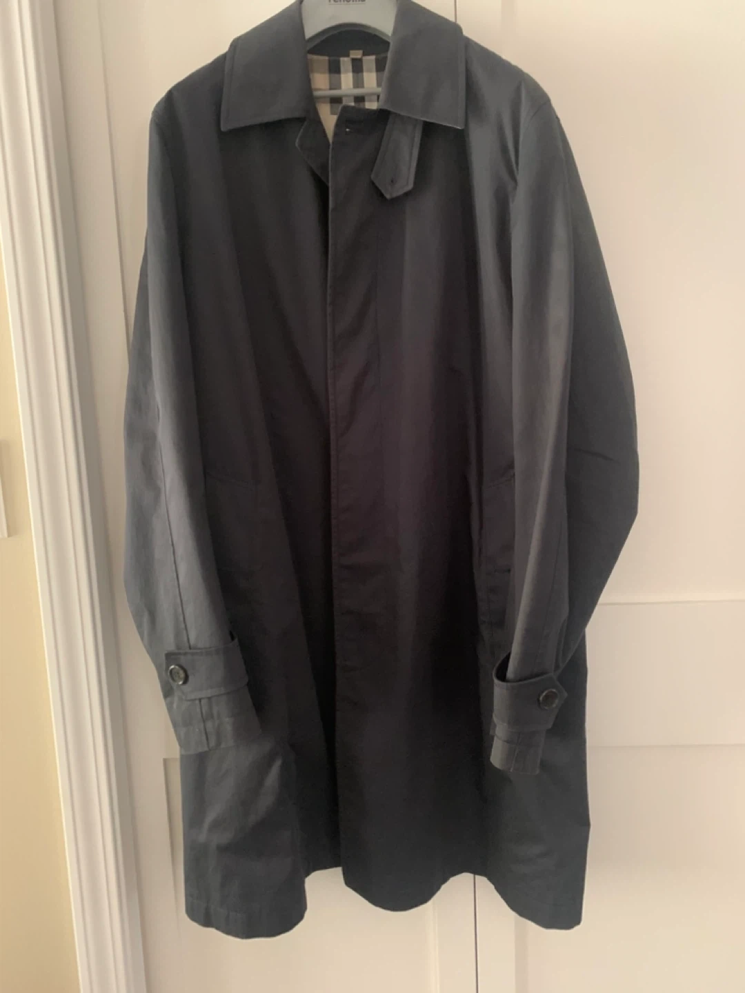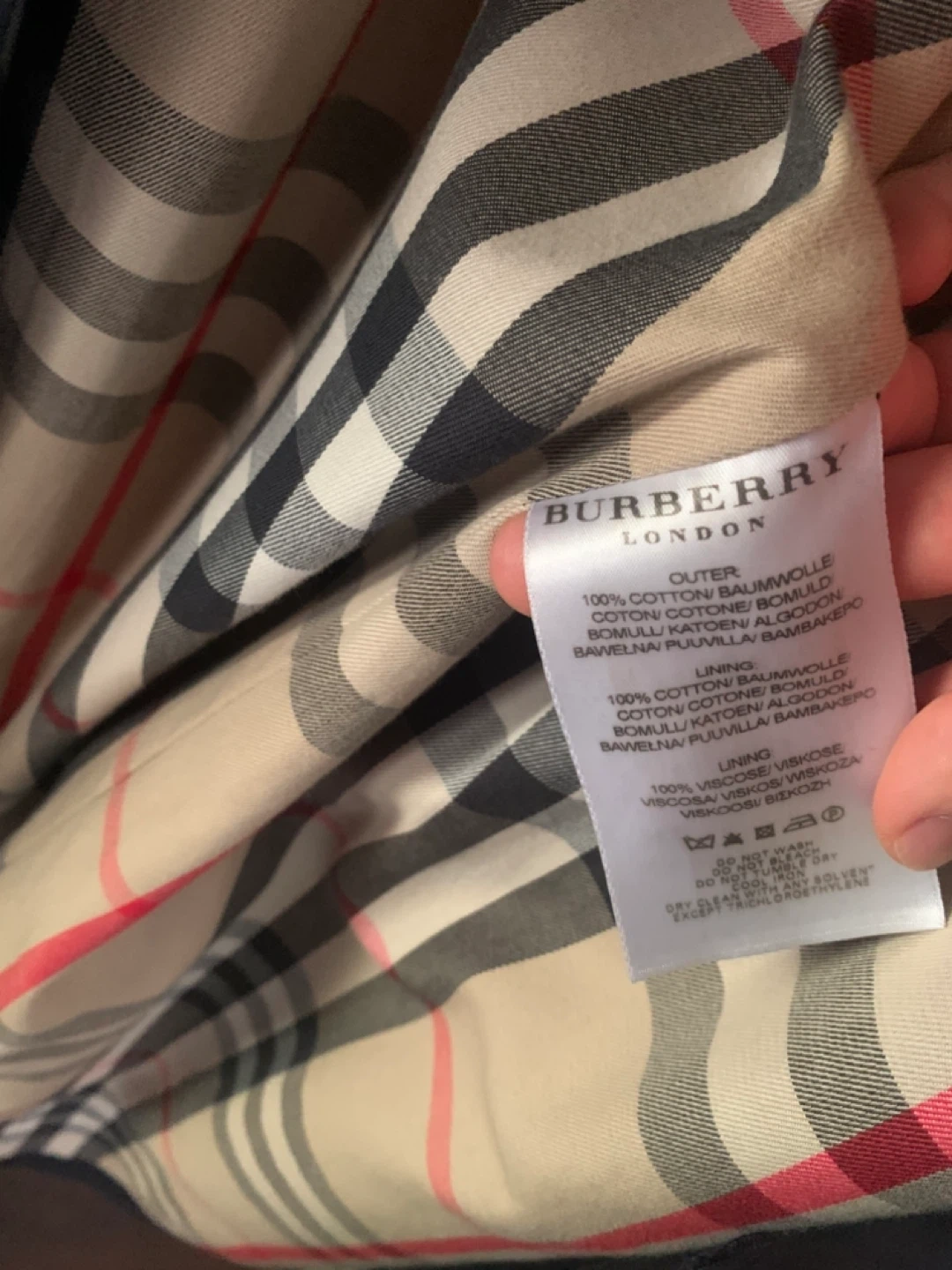 754Selling a Burberry London trench coat. The outer material is 100% cotton and the lining is 100% viscose. Size 52 fits like L to XL color faded a bit at back of the neck