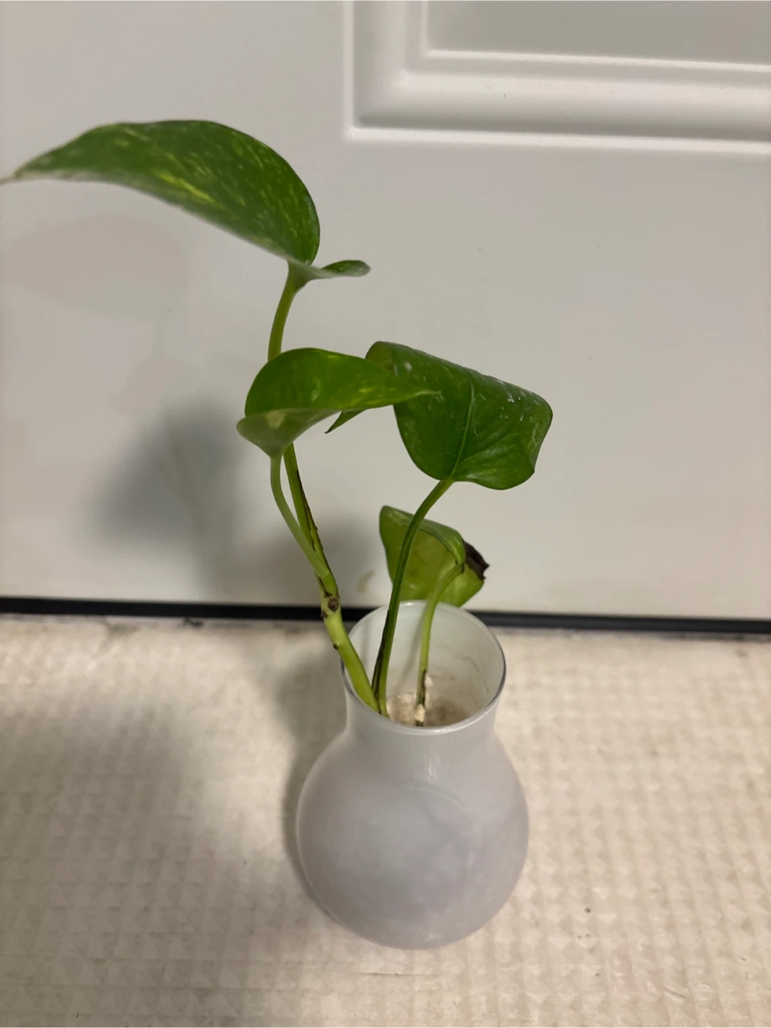 A lovely little pothos plant in a simple white vase! It's perfect for adding a touch of green to any room. The plant is healthy and well-established, ready to thrive in its new home