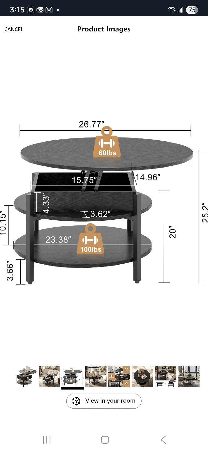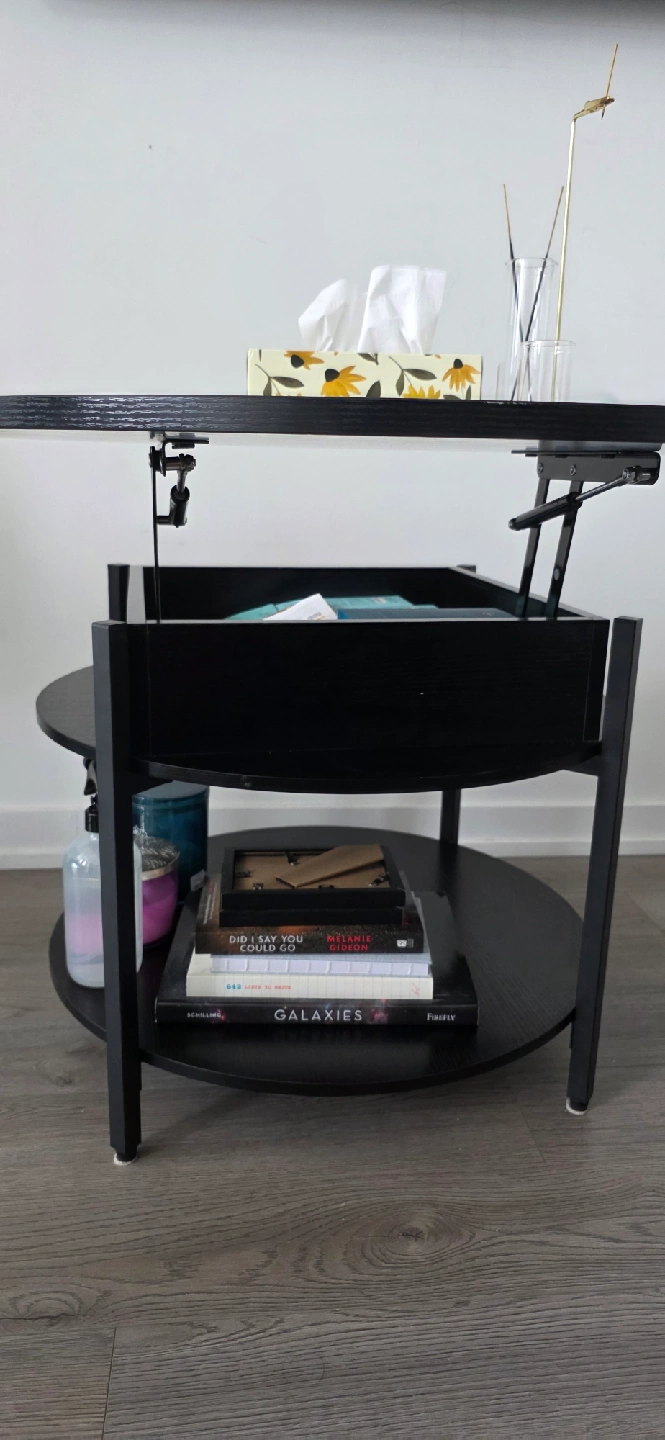 86Hardly used coffee table ! lift top function with plenty of storage. perfect for small apartments. originally from Amazon: fabato round lift top coffee table. Will unassemble for pickup. Would like gone asap!
