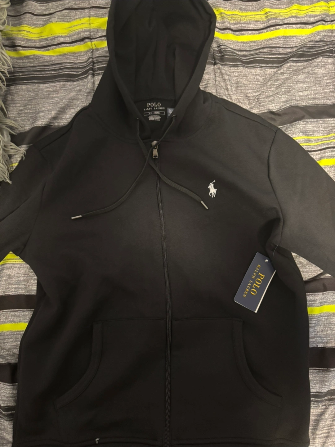 Selling a Polo Ralph Lauren black hoodie in size XL. It's in great condition and ready for a new home! Features the classic Polo logo and a comfortable fit. Perfect for layering or wearing on its own