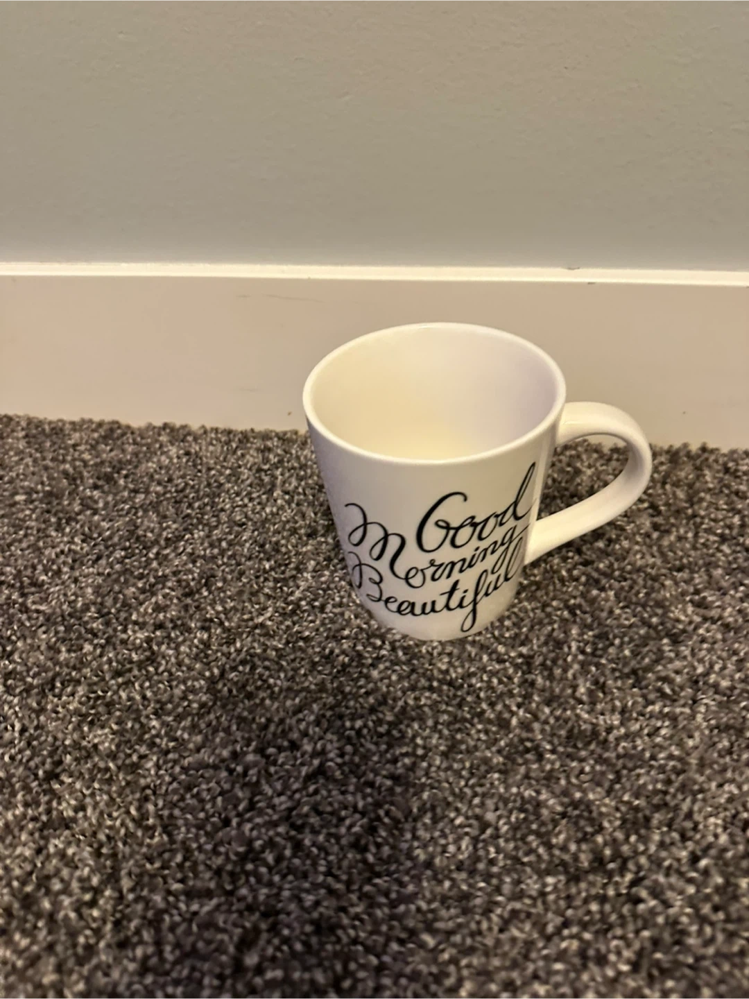 A lovely mug that says 'Good Morning Beautiful' in cursive. Perfect for starting your day with a positive message and a warm beverage