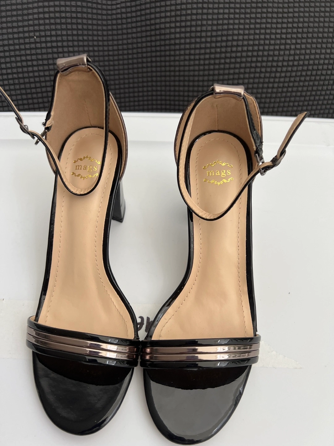 Selling a pair of black heels from Mags. They are in great condition and would be perfect for a night out or a special occasion! They feature a sleek design with a comfortable heel height