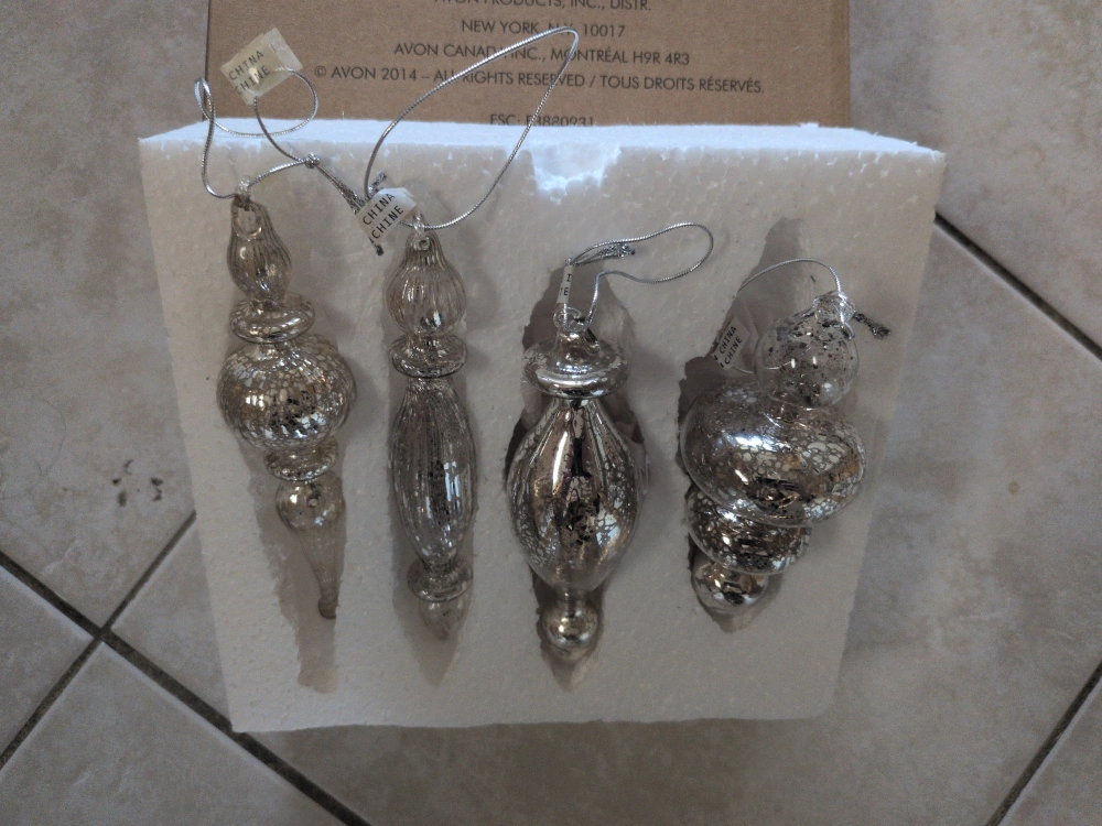 536Selling a set of 4 mercury glass ornaments from Avon. They come in their original box. These are perfect for adding a touch of vintage charm to your holiday decor