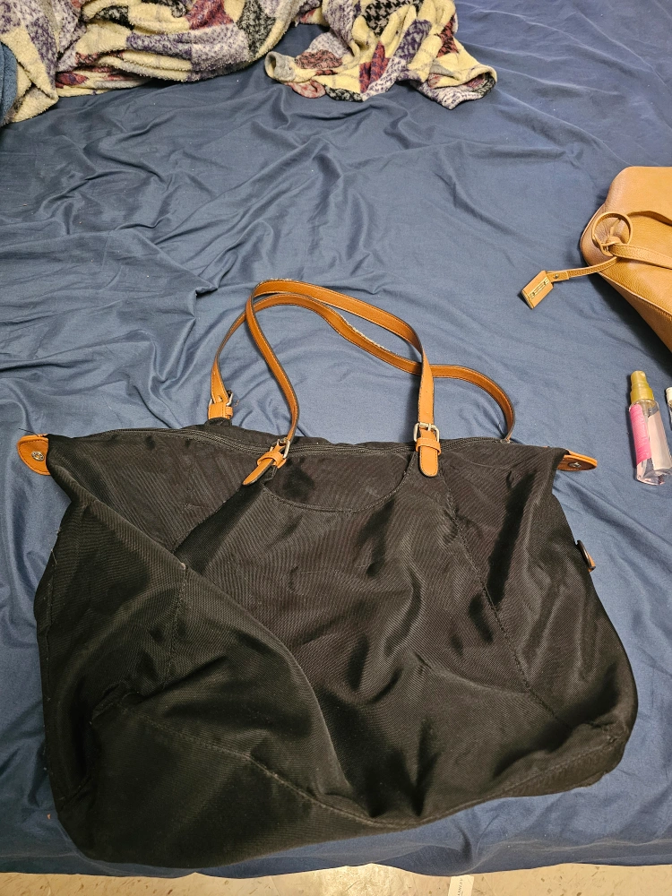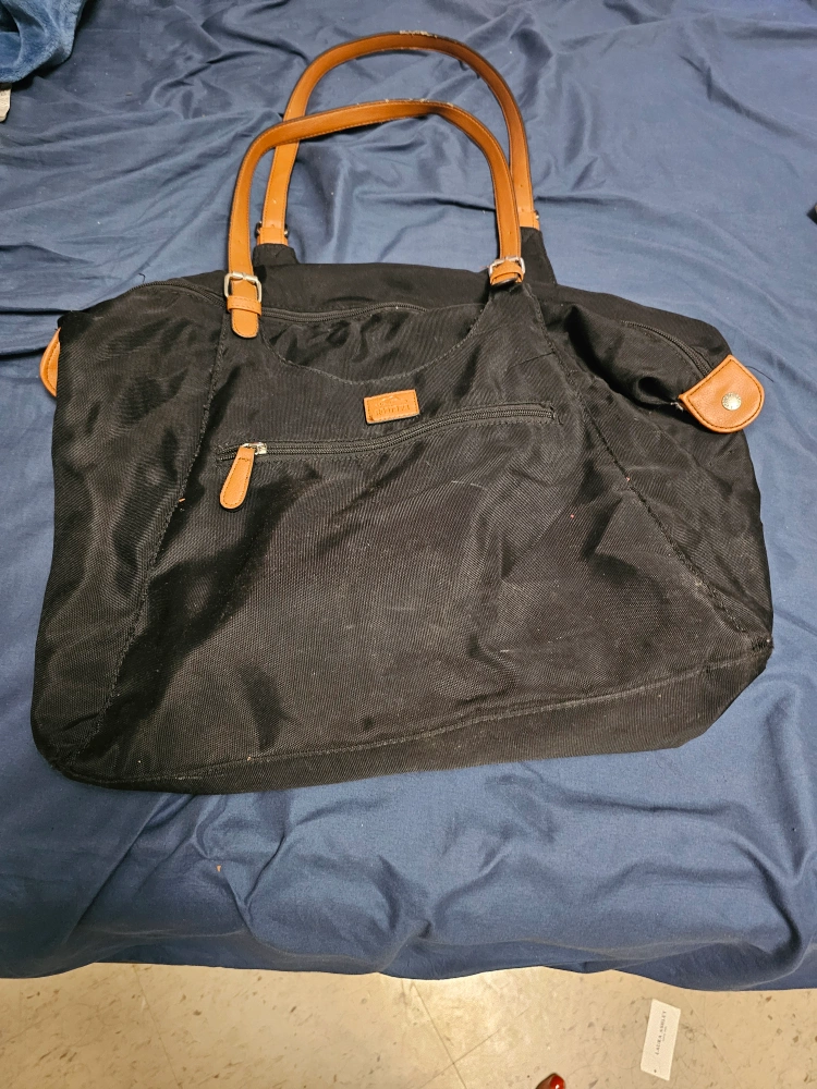 Roots black tote bag with brown handles. It's in good condition and ready for a new home!