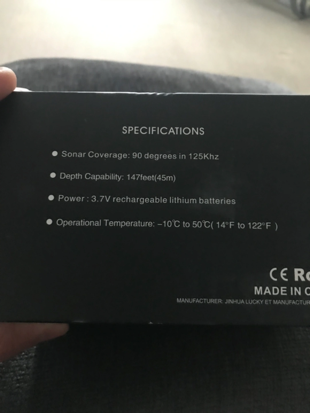 The portable fish finder, with updated 2.4inch TFT color LCD screen(more clear to display), can detect and display underwater contour, water depth, water temperature and fish size(big/middle/small) and fish depth. I
