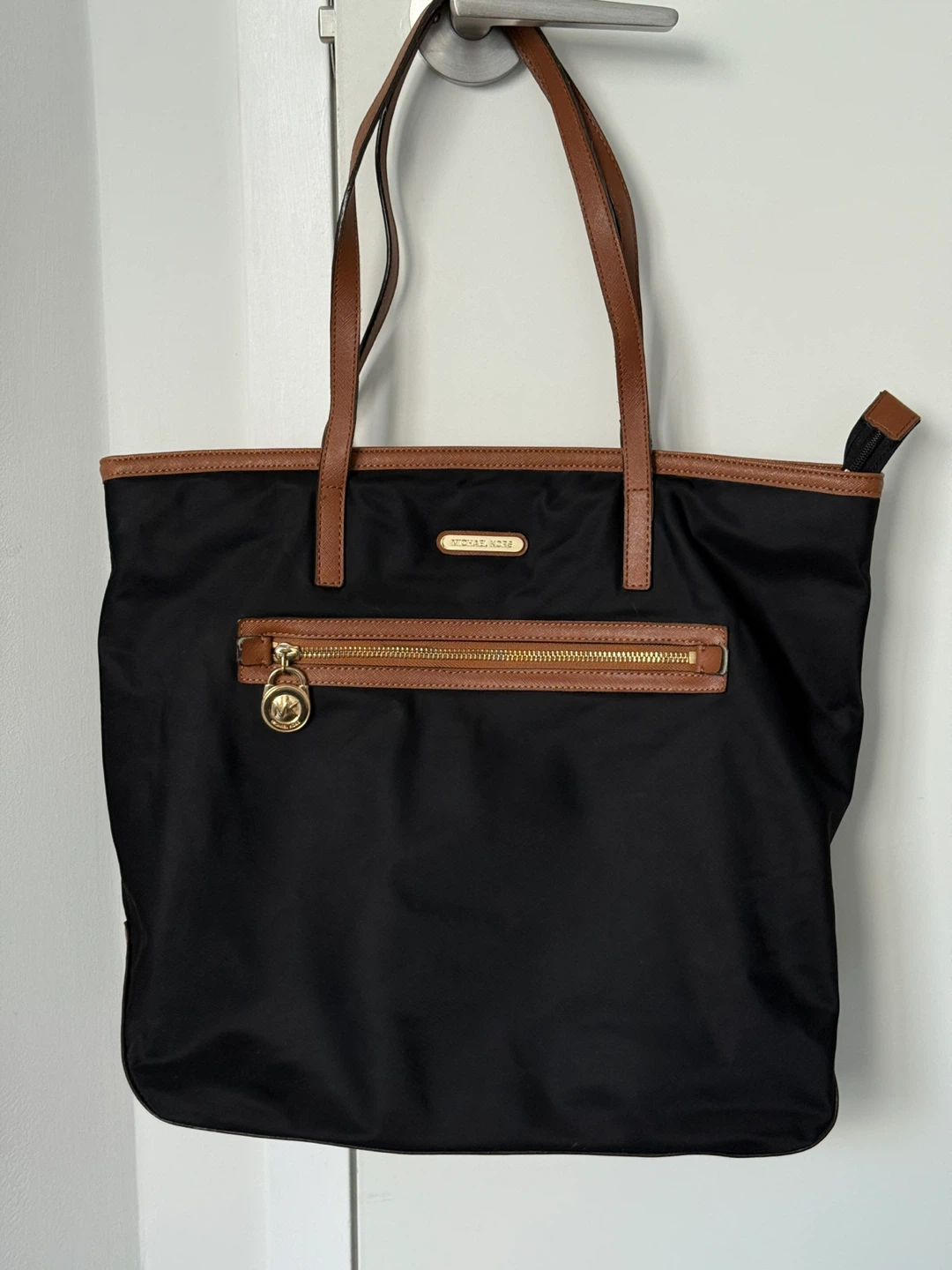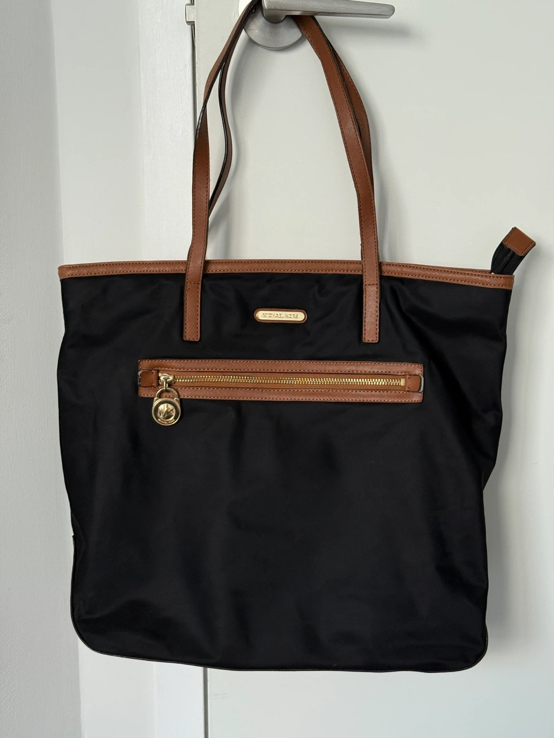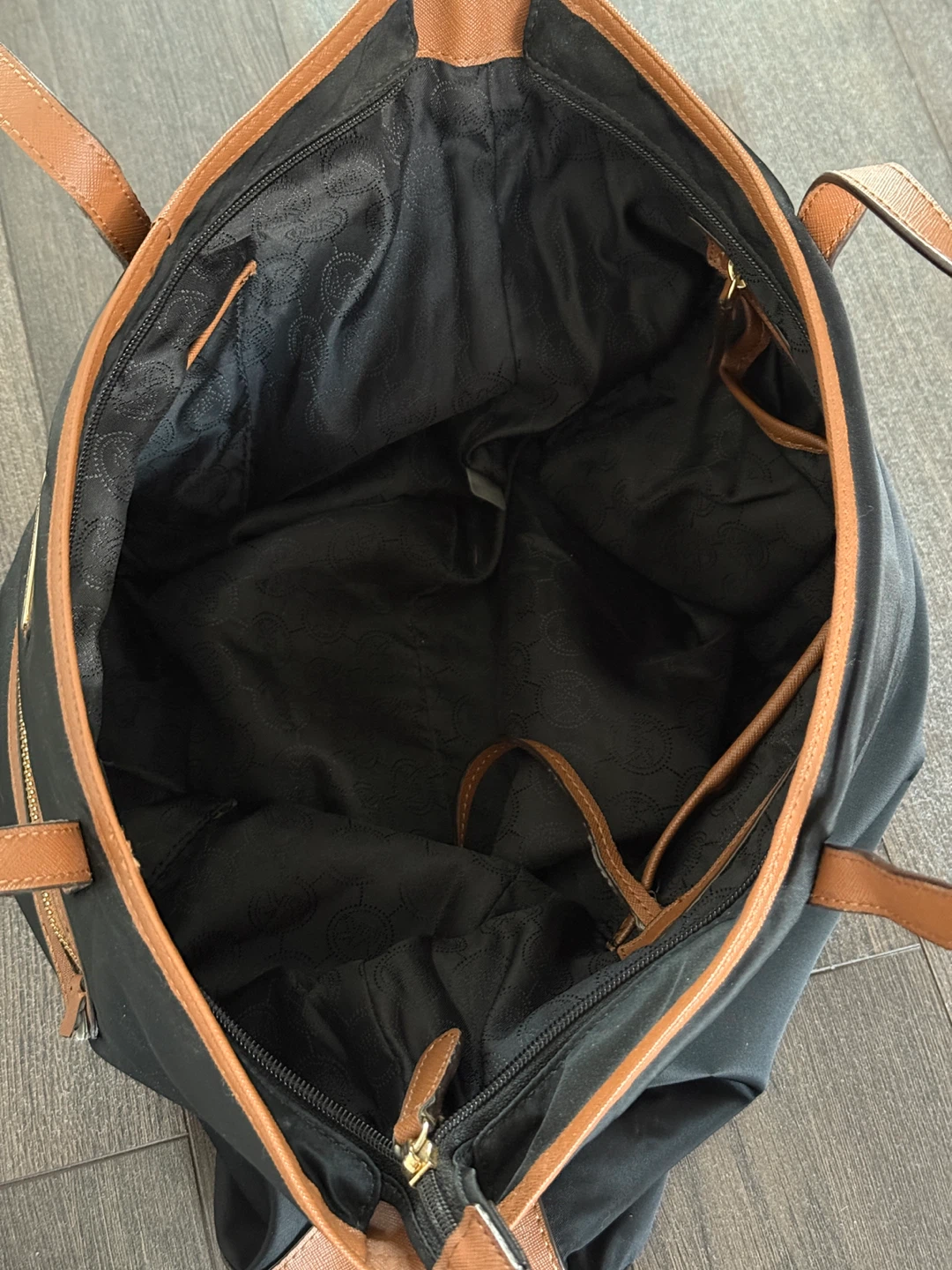 Looking to pass along this Michael Kors tote bag! It's in great shape and has a classic look with the black exterior and brown trim. Perfect for everyday use or travel!
