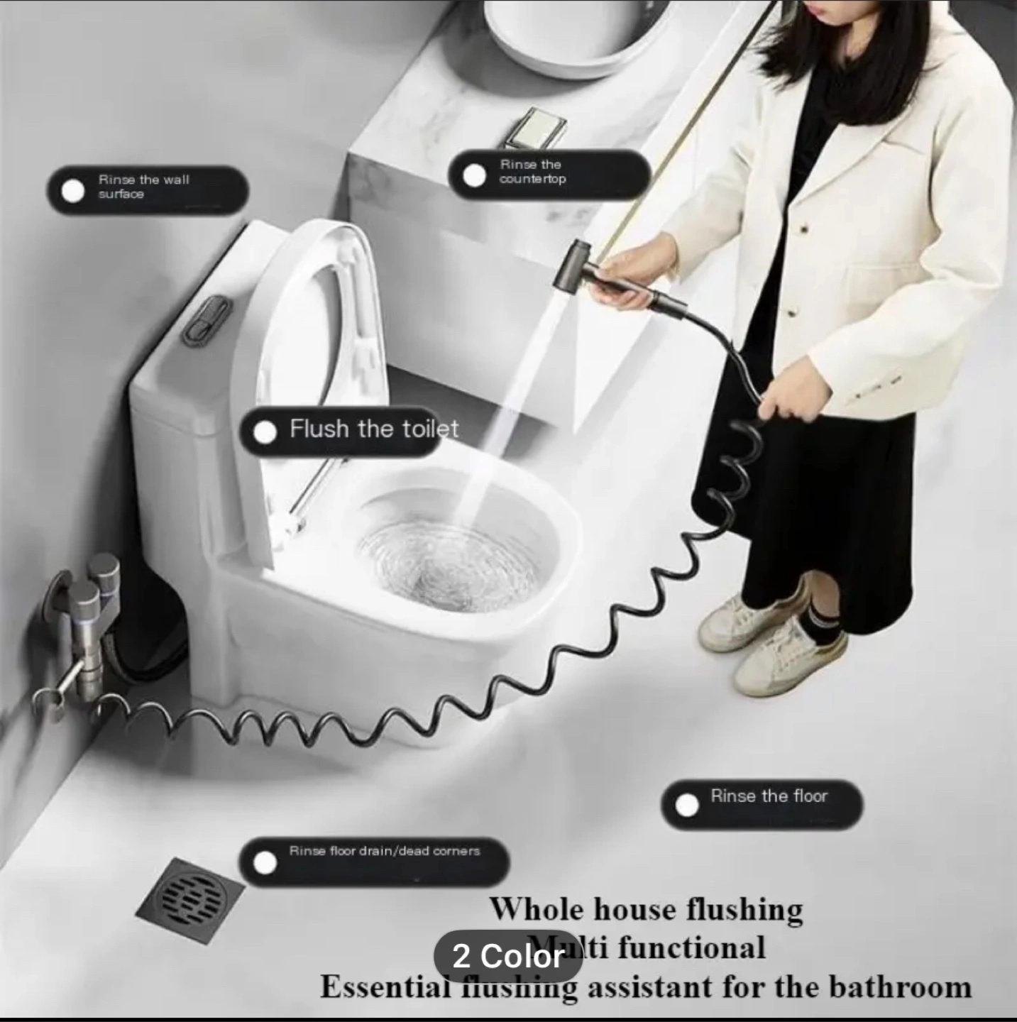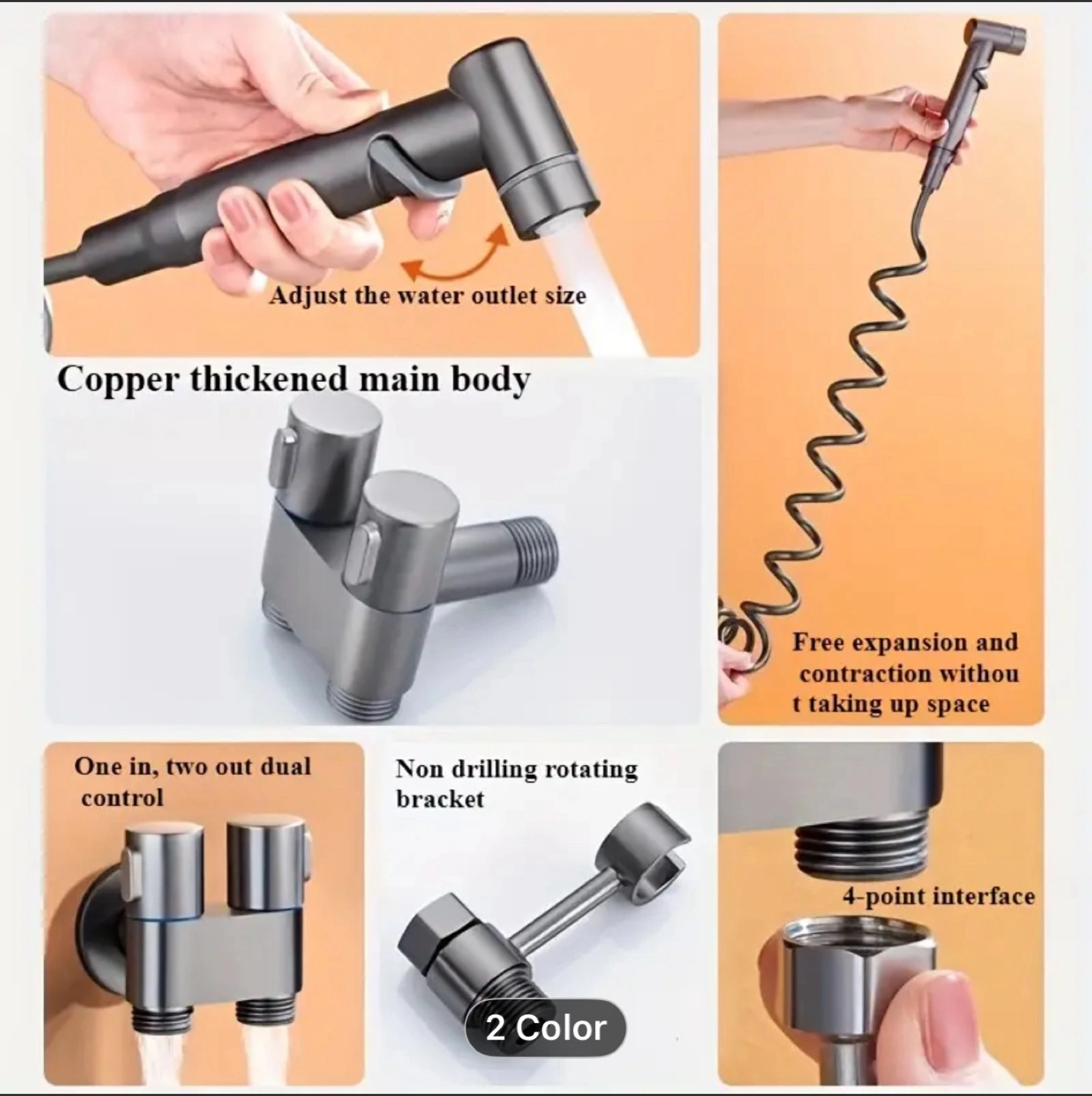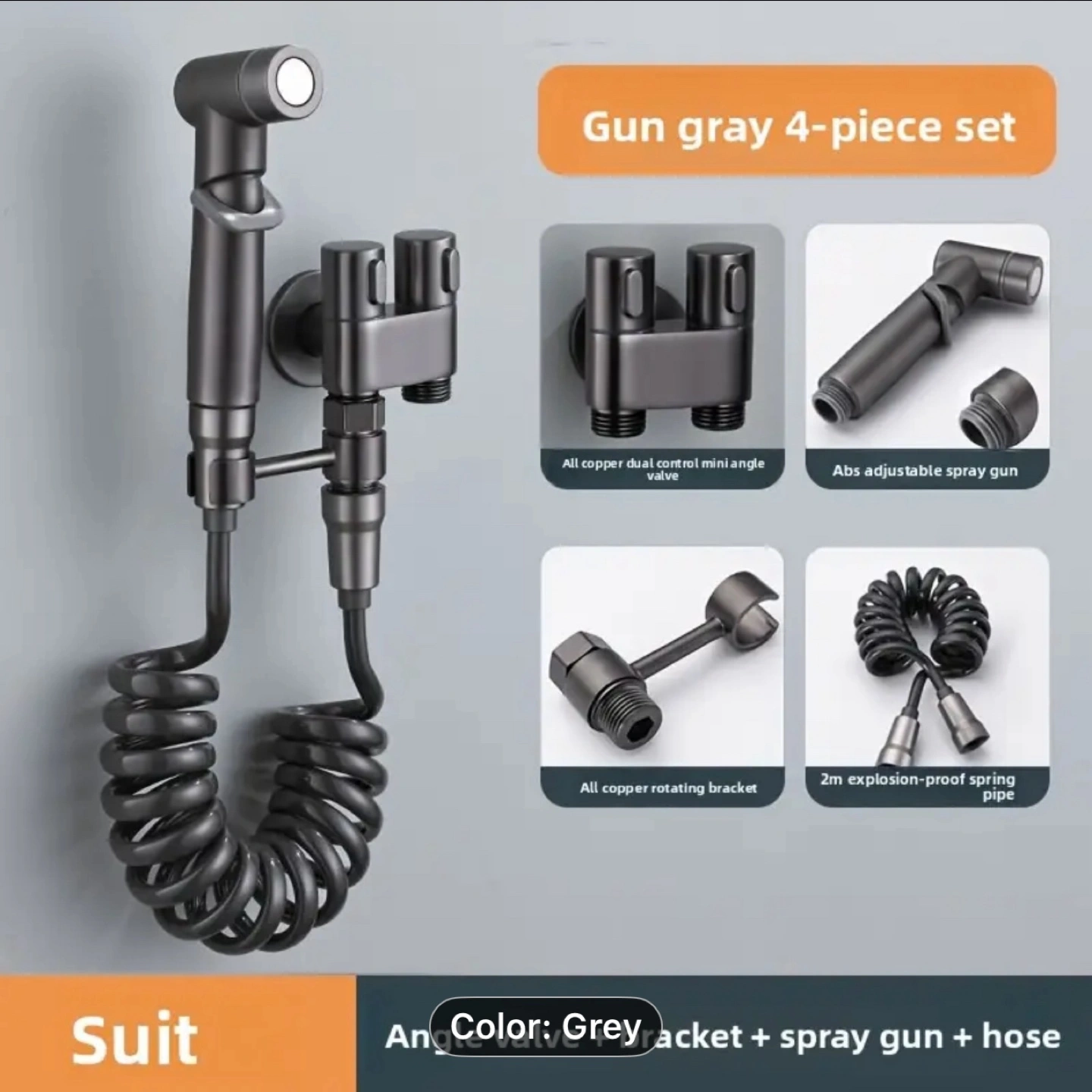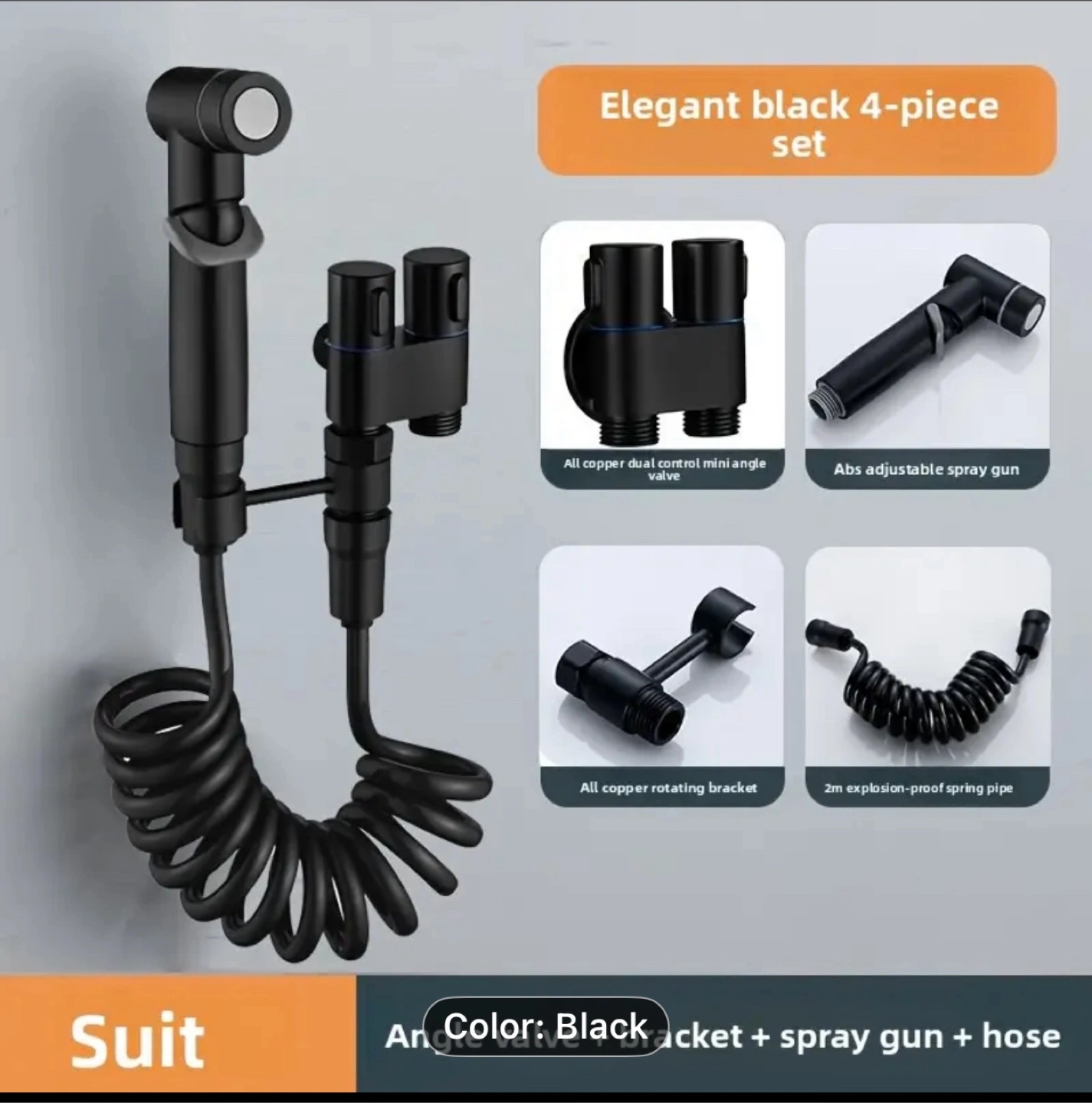 634pcs/1 Set Handheld Bathroom Equipment Kit, Wall Mounted 2-In-1 Corner Valve Kit, Metal Spray Gun, Telescopic Hose And Bracket, Suitable for Washing Machines, Bathrooms, Rvs, Toilet Companion Set