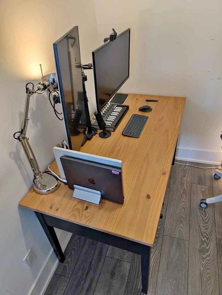 Home Office Desk: IKEA ARKELSTORP (see here: https://www.amazon.ca/ARKELSTORP-desk-140x70-cm-black/dp/B0D1CRL3SX)