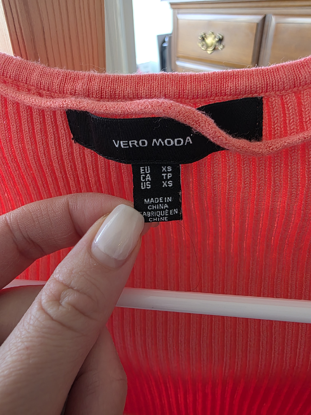 Vero Moda Coral Ribbed Top - Size XS
