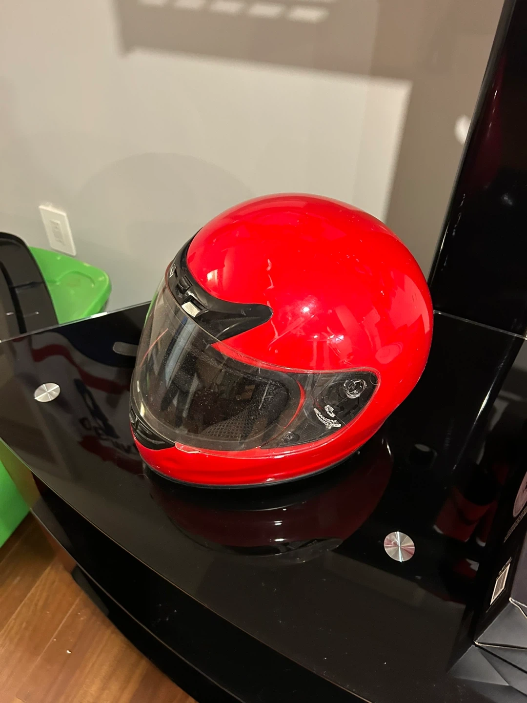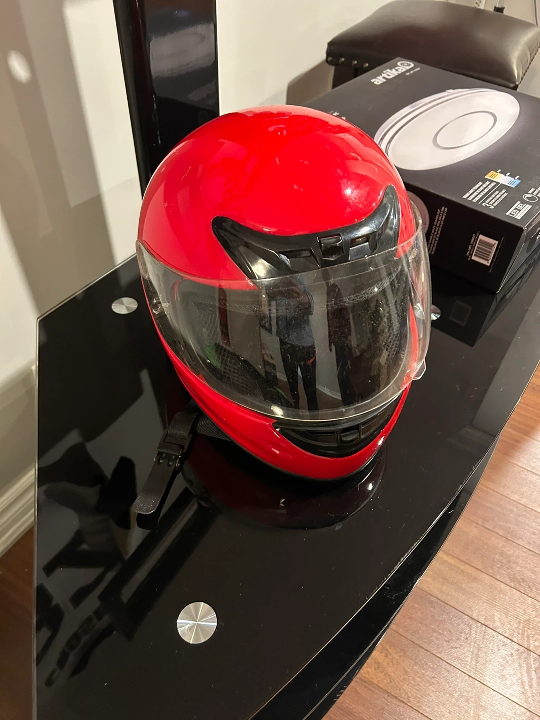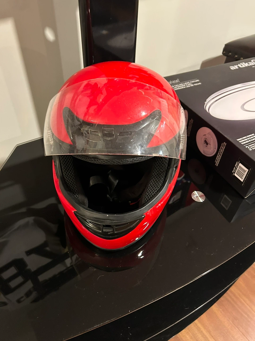 32Selling a red motorcycle helmet. It's in good condition and ready for a new rider. Perfect for ensuring safety on the road. Check out the photos for a closer look!
