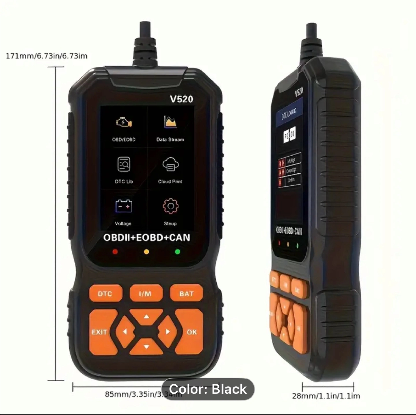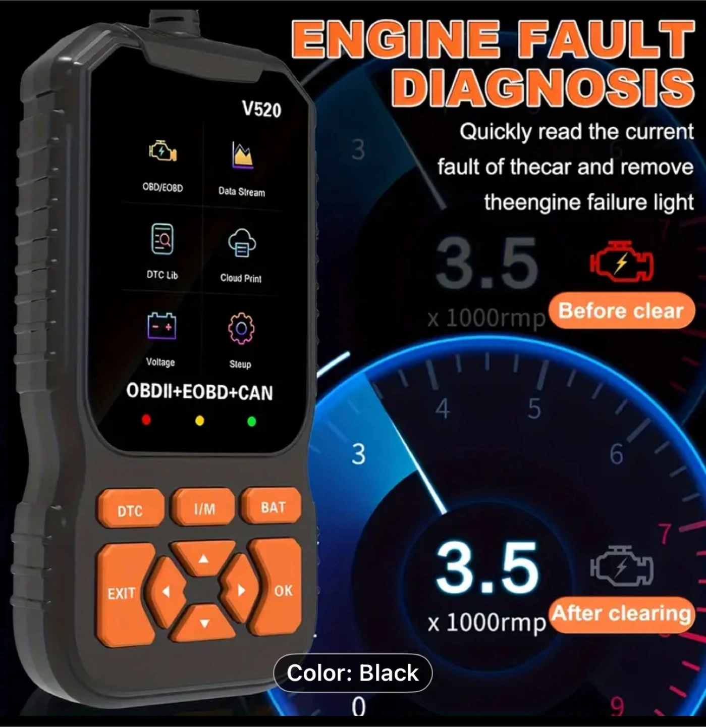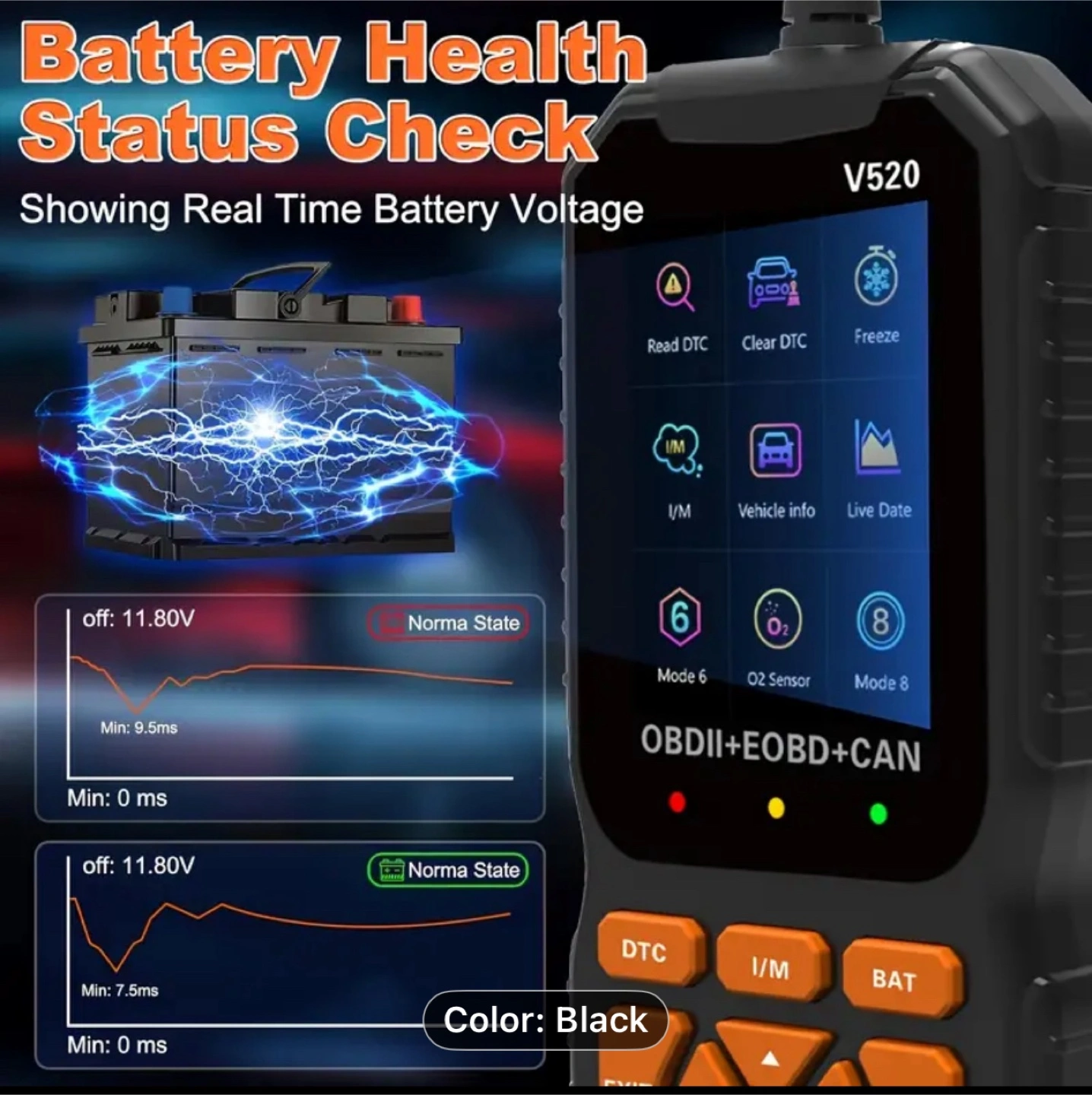 V520 Professional OBD2 Diagnostic Scanner Tool, USB Powered Engine Fault Detector, Code Reader, Battery Tester, I/M Ready, Supports 10 Languages, Suitable for All OBD II Protocol Cars Since 1996, No Battery Required