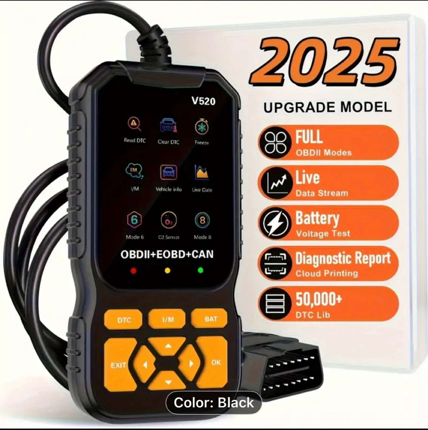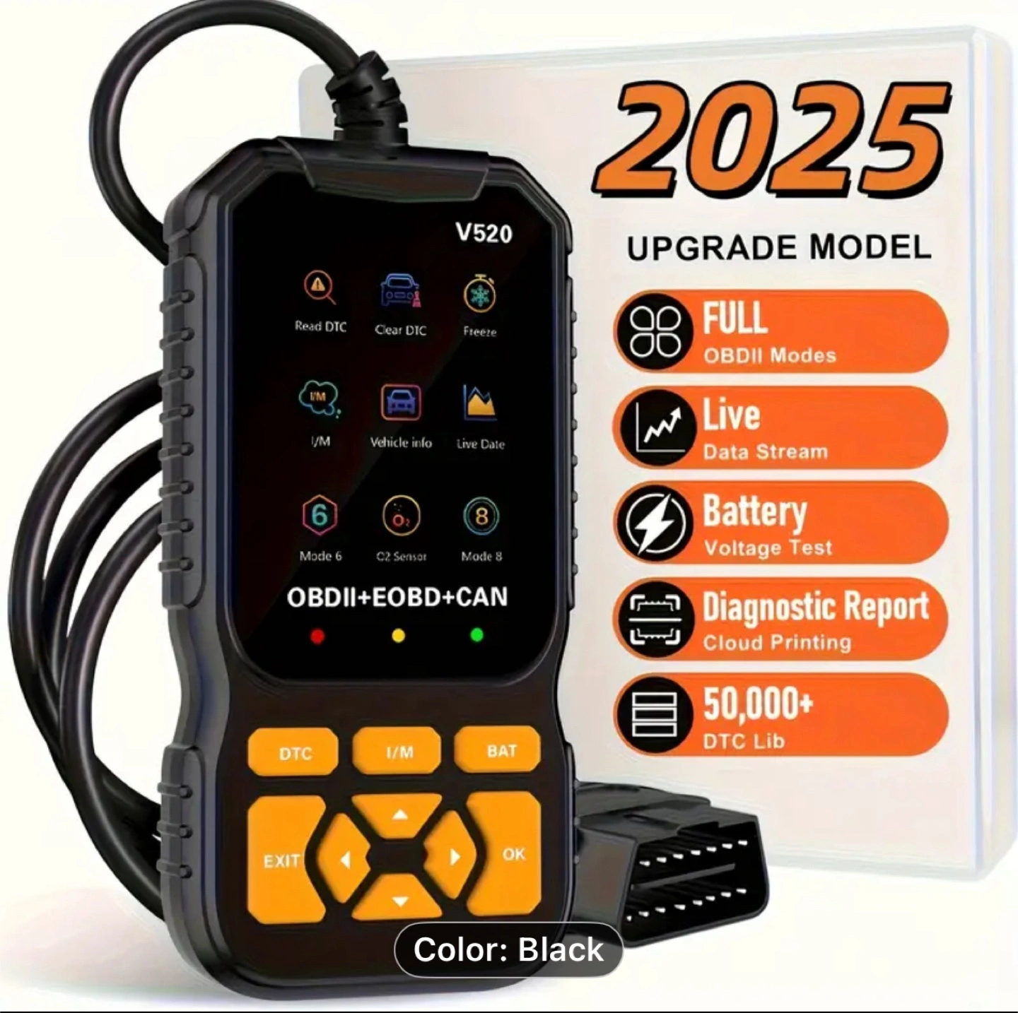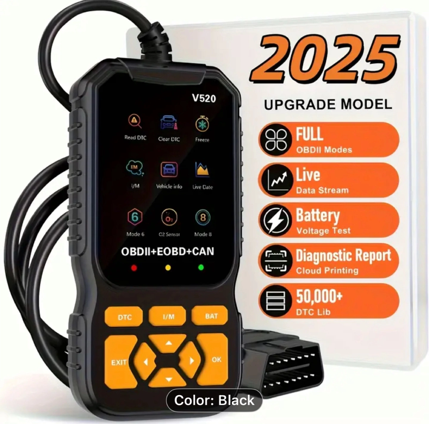 V520 Professional OBD2 Diagnostic Scanner Tool, USB Powered Engine Fault Detector, Code Reader, Battery Tester, I/M Ready, Supports 10 Languages, Suitable for All OBD II Protocol Cars Since 1996, No Battery Required