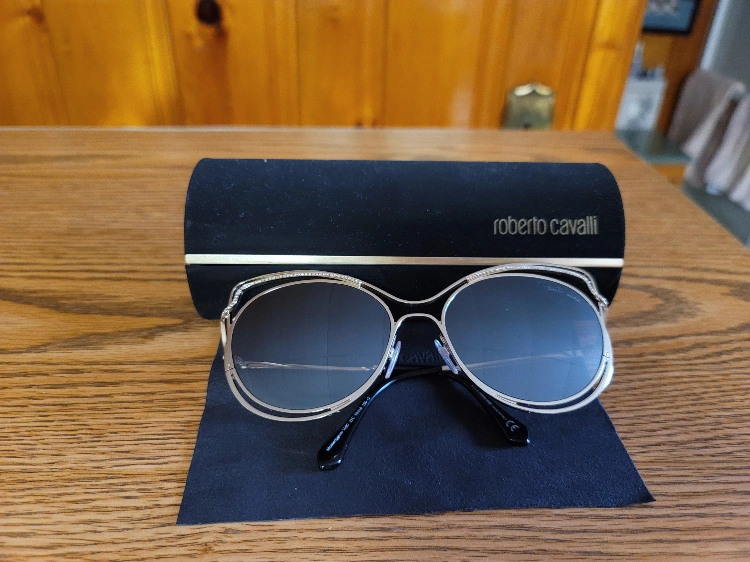 Selling a pair of Roberto Cavalli sunglasses. They come with the original case for safekeeping. These sunglasses have a unique design and are in great condition, ready to add a touch of style to your look!